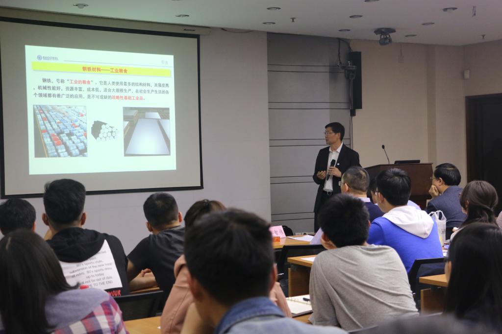 4月26日晚,中国宝武集团技术业务专家张丕军教授受邀做客冰球突破豪华版官方网站周惠久论坛,在科学馆207为广大师生做报告,主题为中国钢铁的故事。冰球突破豪华版官方网站院长单智伟、副院长马飞、宝钢集团中央研究院首席研究员徐世伟教授及师生120余人参加论坛。冰球突破豪华版官方网站副院长丁向东主持会议。