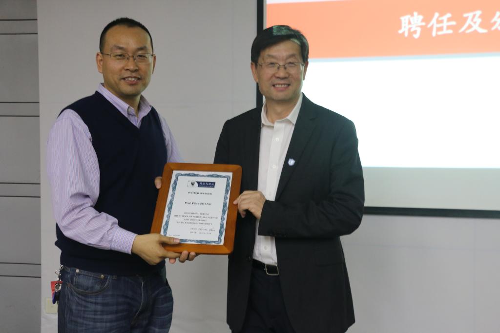 报告开始前,冰球突破豪华版官方网站聘请张教授为兼职教授,单院长为其颁发聘书、并佩戴校徽和院徽。