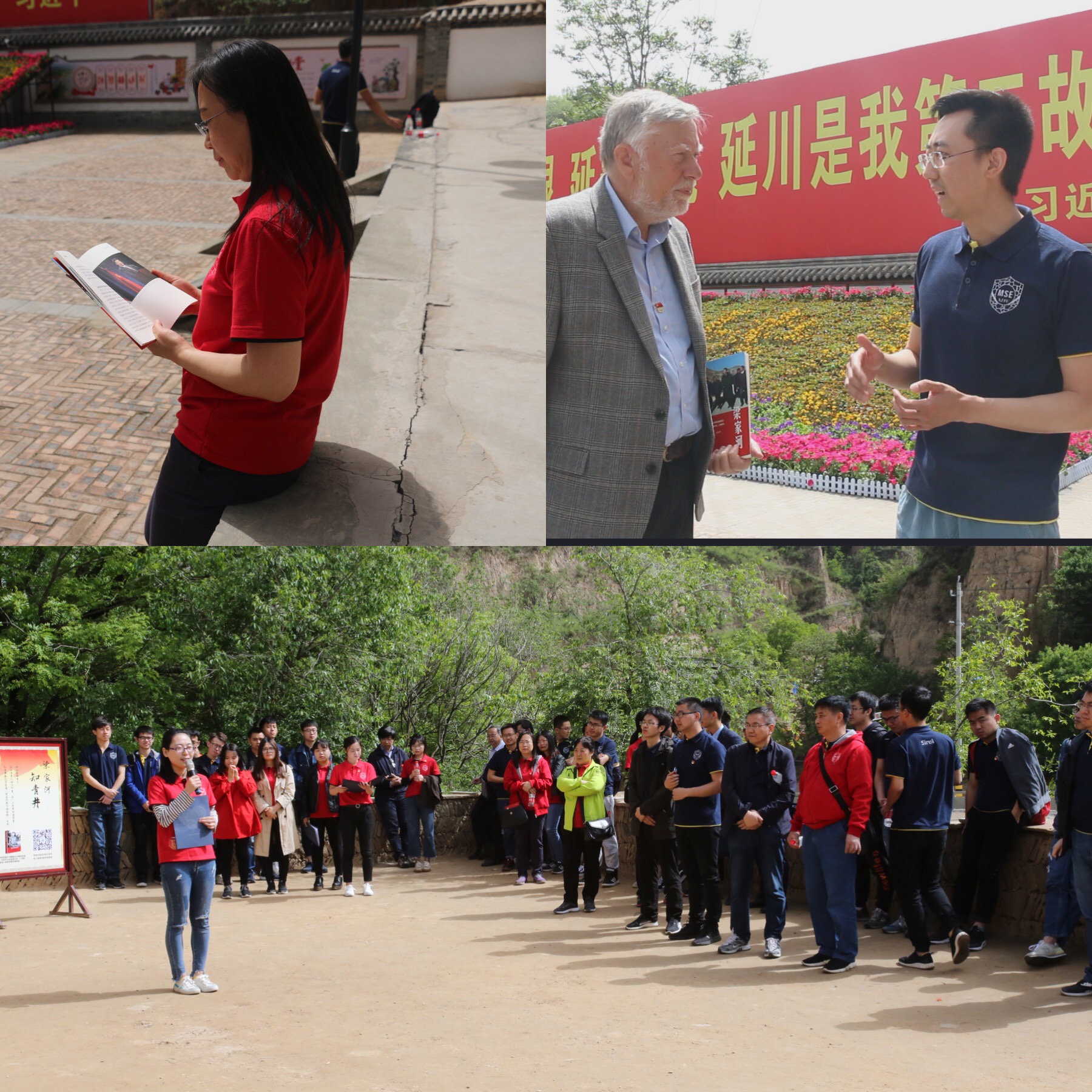 5月12日,师生们来到梁家河旧址,大家跟随讲解员的脚步,沿着习近平总书记当年下乡插队走过的道路,参观了梁家河村史馆、沼气池、知青旧居等,了解到习总书记当年插队时克服各种困难,急群众所急,改变农村生活面貌,建沼气池、淤地坝的故事,了解总书记当年与黄土为伴、与书本为友、与群众为亲日子里,苦其心志、劳其筋骨,重实干、重务实的历程。在这片给予习总书记最初理想信念并注定了他此后人生轨迹的土地上,师生们深刻感受到他“艰苦奋斗,一心为民”的梁家河精神,感悟到他别样的青春奋斗历程。