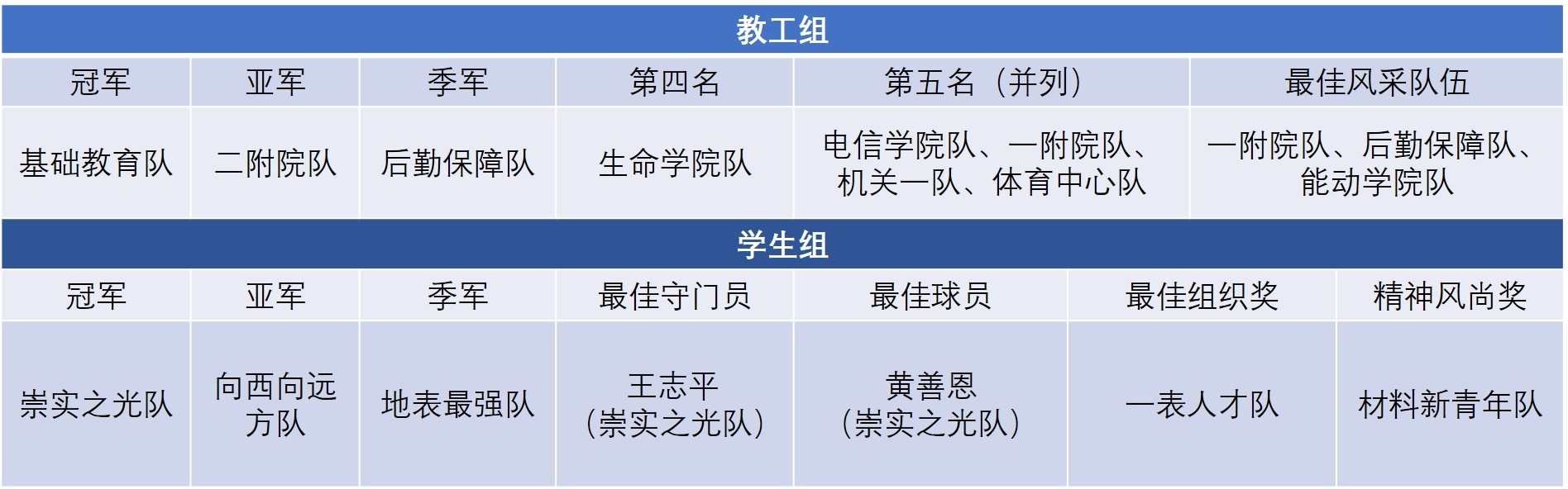 短短两周,各个参赛队伍为大家奉献了一场又一场精彩绝伦、扣人心弦的比赛,在绿茵场上展示耐力与技巧、力量与灵活,在学习和工作之余,不忘健康,将运动融入生活,不断增进彼此之间情谊,彰显交大师生昂扬向上、奋斗创佳绩的精神风貌,更让大家体会到运动员们团结合作、永不言弃的精神。