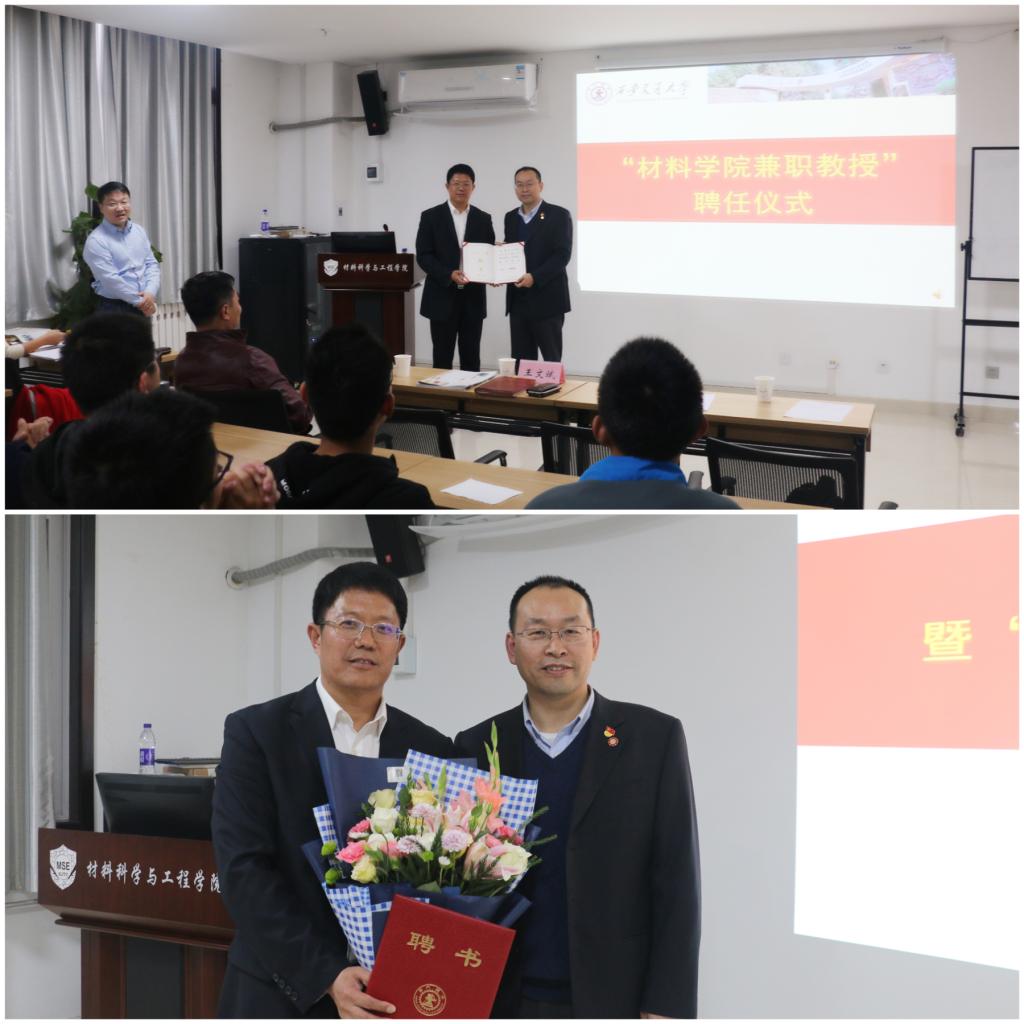 受聘仪式上,聘任王文斌为材料科学与工程学院兼职教授,单智伟院长为其颁发聘书并佩戴校徽。单院长谈到,“新时代的科研领域要面向未来,教育体系也需完善升级,教育方案需改革创新,因此与知名校友企业合作,是完善教育体系、实现科研现代化的重要工作,学院有义务帮助民族企业走向世界、企业也应融入学院整体发展,共同承担育人之责,通力合作,实现互利共赢。”他表示学院将继续加强与校友企业合作力度,双方资源互补,在交叉融合中让双方合作更上一层楼。
