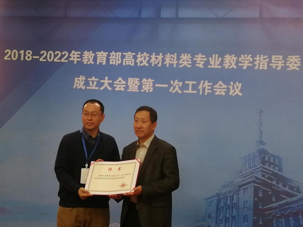 在新一届教育部高校材料类教指委成立大会上,周玉院士为各位副主任、秘书长、委员颁发聘书。