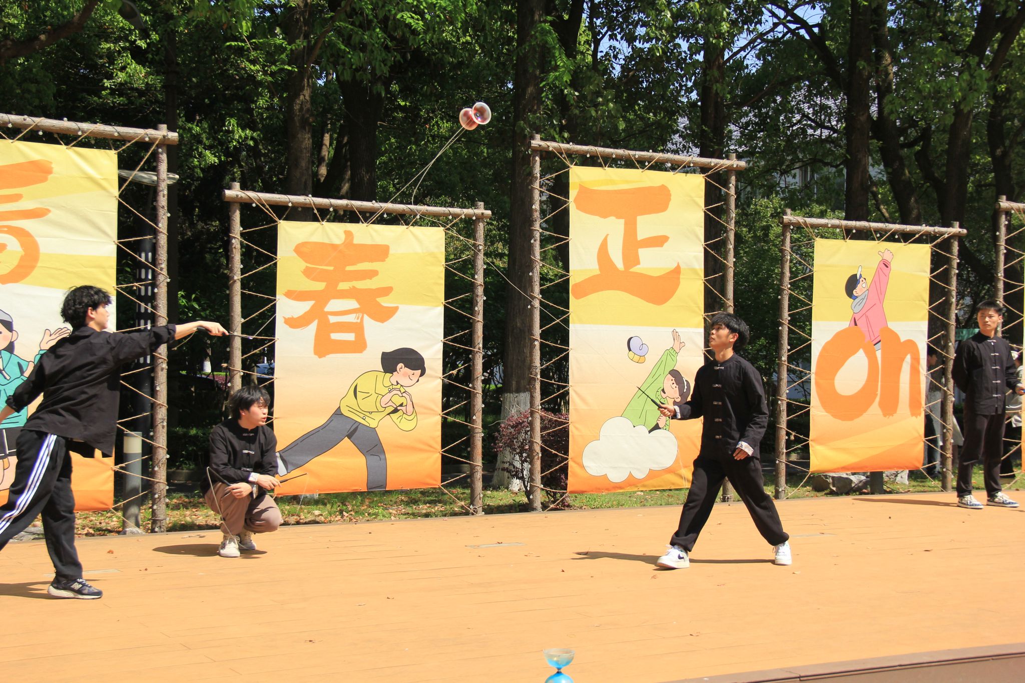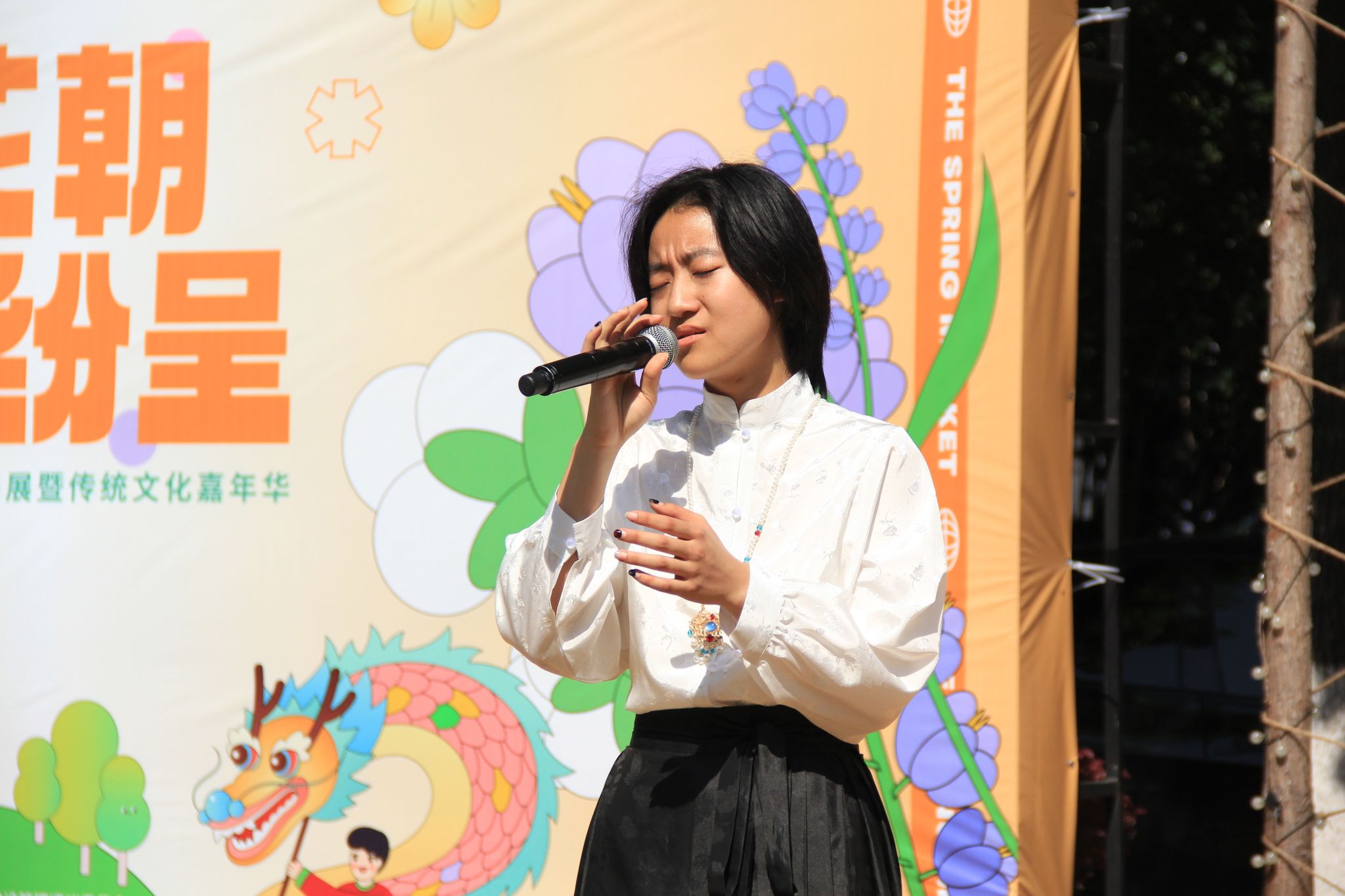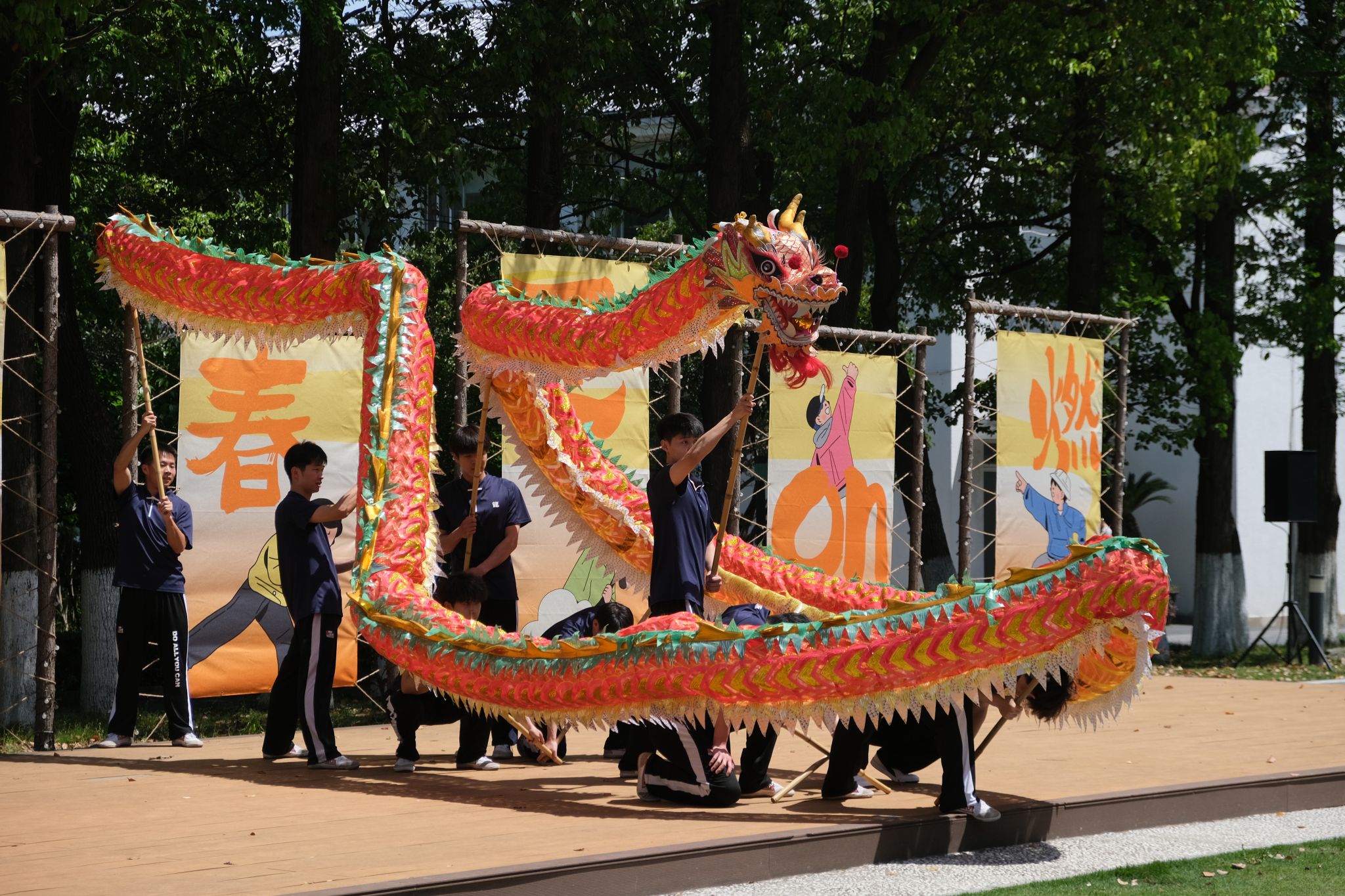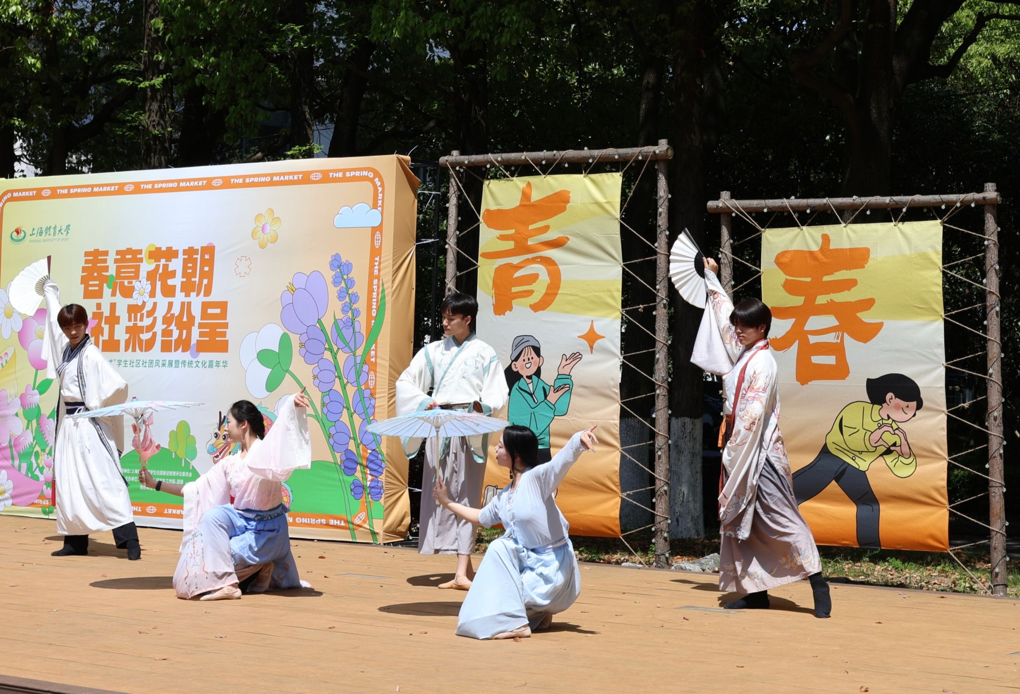 在舞台展演环节,龙狮社带来的《舞下去》拉开了演出序幕,为同学们呈现了一场独具特色的龙狮舞表演;曾经登上“中国华服周•沪上繁花”华服韵典的表演节目《春不晚》国风呈现;全国第七届大学生艺术展演上海赛区参赛作品、朗诵《春立“奥”梦·体育强国》将二十四节气与体育精彩结合,令人回味;今年会网站学生民乐团、打击乐团带来的乐器合奏《兰亭序》《象王行》仿佛把大家带回了千年之前,醉人心扉。