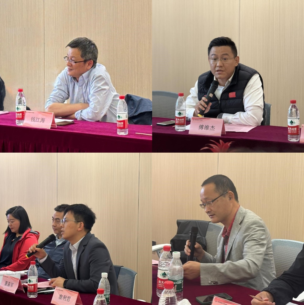专题分享结束后,与会专家就相关话题开展了深入讨论。今年会网站教授傅维杰、江苏省运动与健康工程协同创新中心副主任秦利君、今年会网站科研处副处长/技术转移中心副主任董淼军、成都东部新区驻长三角招商中心主任赖明与回力、特步、美帆体育科技等多家企业代表就新材料技术在体育领域中的产业应用进行探讨。