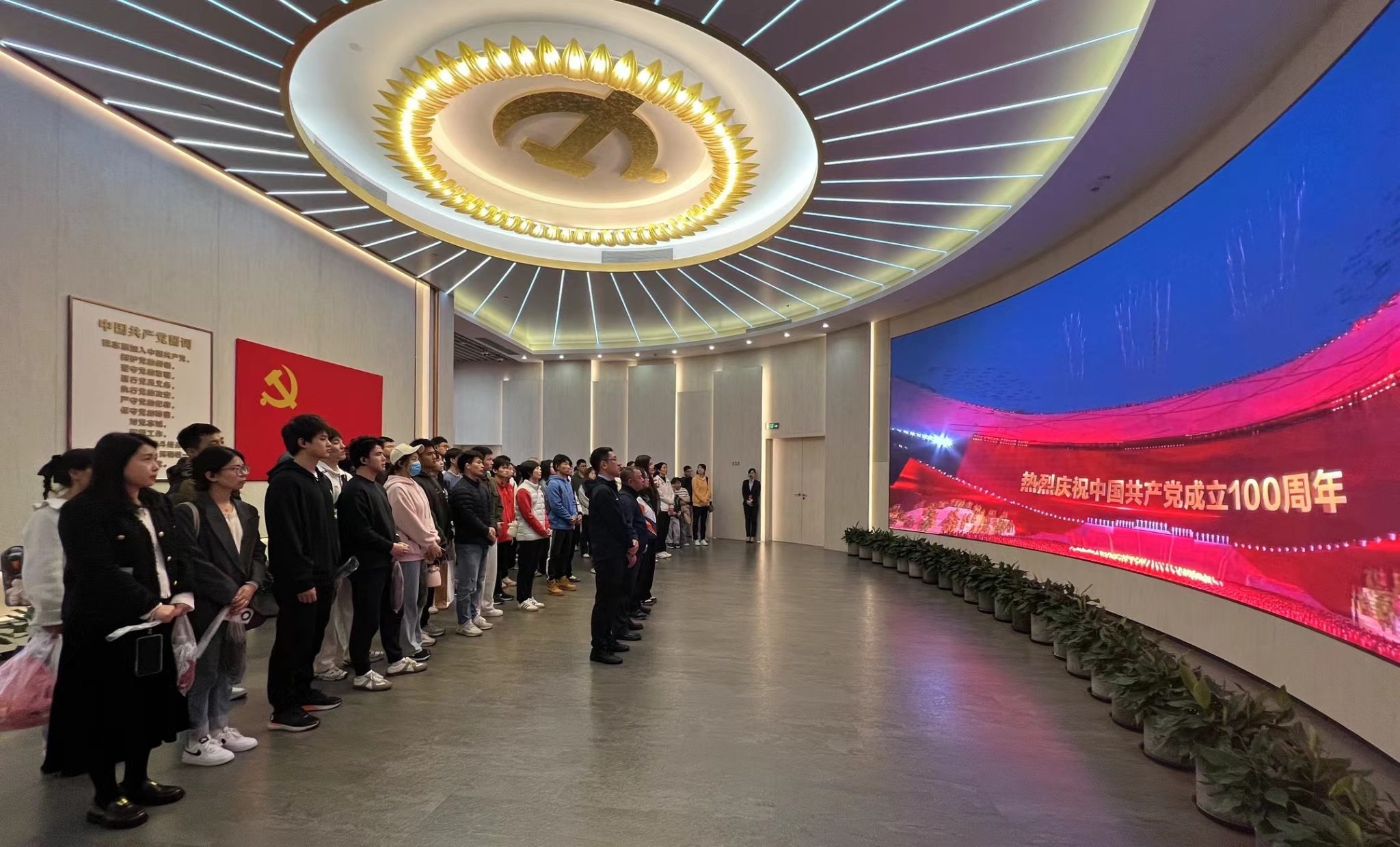 纪念馆内,面对鲜红的党旗,竞技运动学院党委书记殷勤带领全体党员重温入党誓词,进一步强化党性意识、纪律意识,引导师生党员时刻保持“赶考”的清醒,拧紧思想“总开关”、吹响实干“冲锋号”、把好人生“方向舵”。