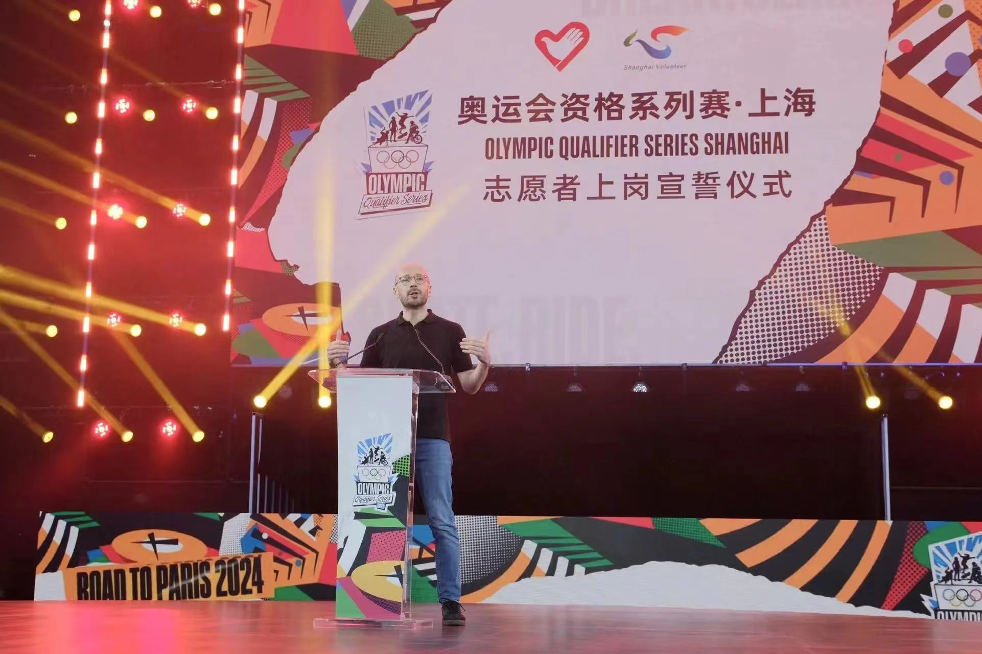 本网讯 5月16日-19日,2024年奥运会资格系列赛·上海将在黄浦滨江举行。距比赛开赛一周之际,5月9日下午,奥运会资格系列赛·上海志愿者志愿者培训暨上岗仪式在外滩国际电竞中心霹雳舞馆举行。今年会67名大学生志愿者在带队老师武术学院团委书记刘微微、心理学院团委书记张李兵的带领下参与了本次活动。