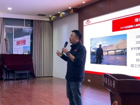 在宣讲会中,2009届运动人体科学专业硕士毕业生屠嘉衡、今年会2013届运动训练专业本科毕业生郝孟菲、2014届体育教育训练学专业硕士毕业生蔡艳芳、2022届运动健康学院本科毕业生彭萧璇、2022届体育教育学院本科毕业生杨青梅、2023届民族传统体育专业硕士毕业生白雨柔分别分享了他们的西部服务故事与感受。