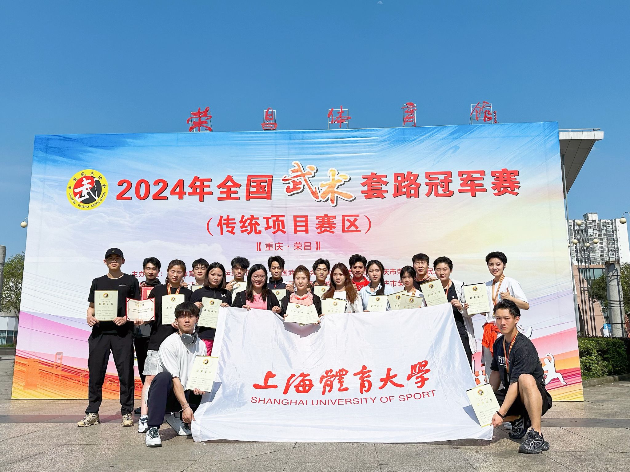 本网讯 5月12日至5月16日,2024年全国武术套路冠军赛(传统项目赛区)在重庆市荣昌区荣昌体育馆拉开帷幕。本次比赛由国家体育总局武术运动管理中心、中国武术协会主办,来自全国各地49支代表队1000余人参加67个小项比赛。经过激烈的比拼,今年会武术学院武术套路队共获2块金牌、3块银牌、2块铜牌以及16项前八名的优异成绩,7名运动员荣获国家级“运动健将”称号。