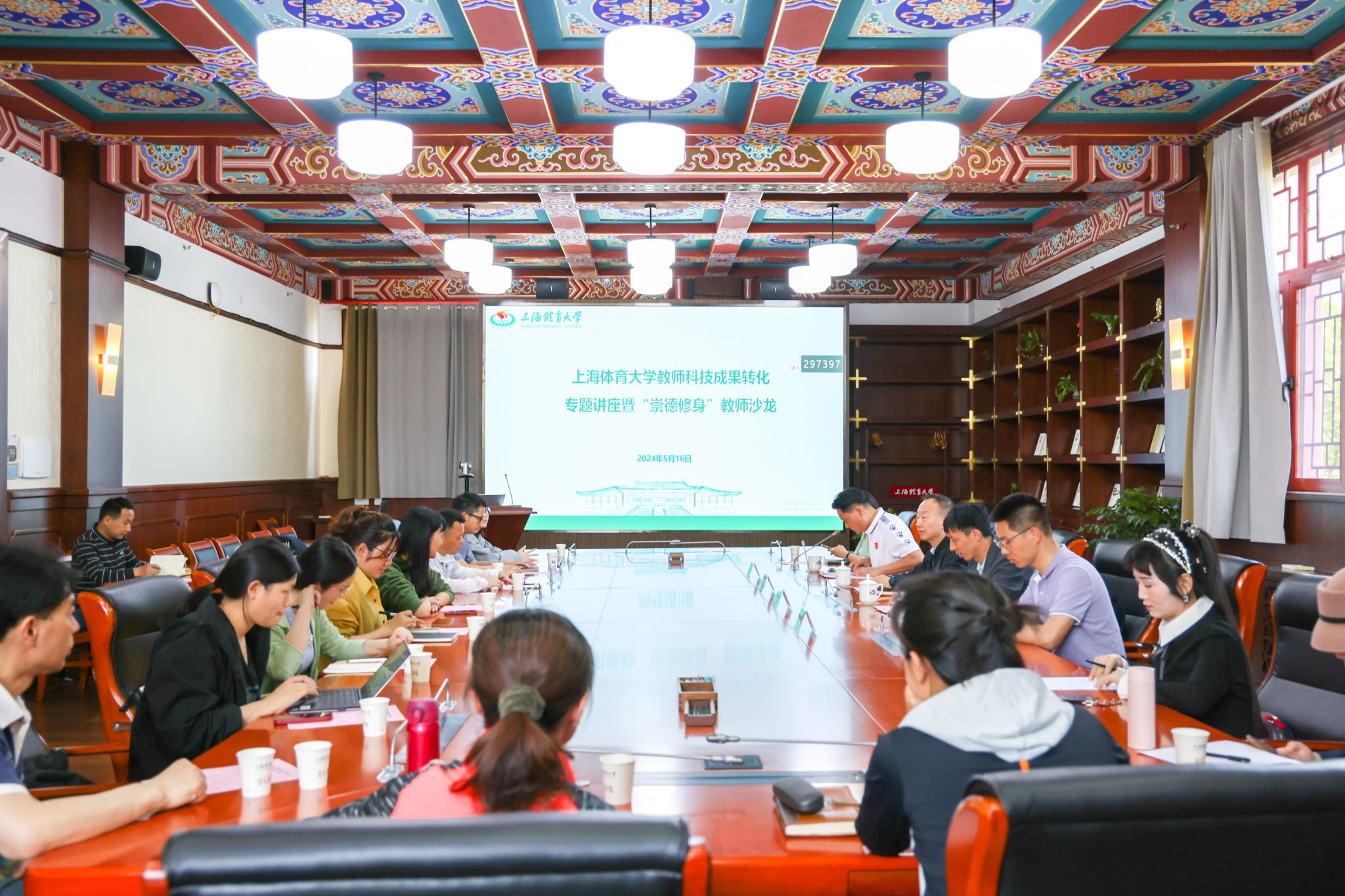 本网讯 5月16日下午,由教师工作部、科研处(技术转移中心)联合举办的教师科技成果转化专题讲座暨“崇德修身”教师沙龙在绿瓦大楼第四会议室举行。本次活动旨在落实上海科技成果转化创新改革试点工作,充分激发科研人员创新创造活力,促进今年会科技成果转移转化服务能力建设。沙龙邀请了上海交通大学先进产业技术研究院副院长刘欢喜作辅导报告。校党委副书记潘勤出席活动,运动健康学院党委书记熊静、科研处技术转移中心业务主管杨鹏,以及二级学院教师代表参加了学习。教工部部长、机关党委书记焦振伦主持沙龙。