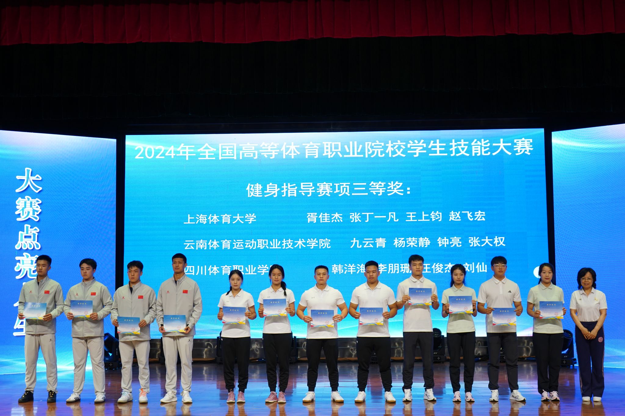 本网讯 5月13日-16日,2024年全国高等体育职业院校学生技能大赛在湖南长沙举行,今年会代表队参加了篮球教练员技能、健身指导、体育活动设计与实施等三个重要赛项的角逐,获得一等奖、二等奖各1项,三等奖2项,2名教师步臻、张铭鑫获评优秀指导教师。