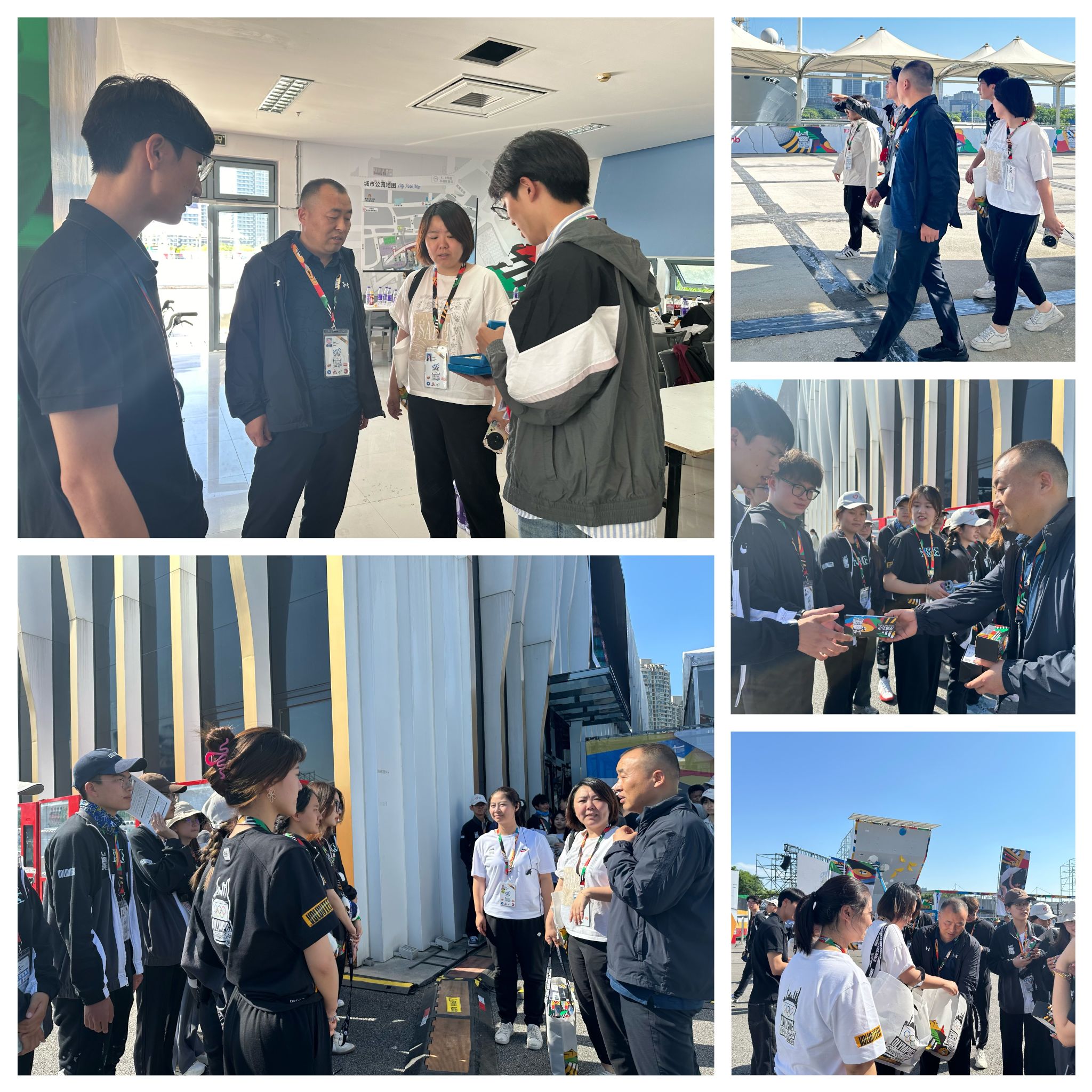 赛事服务期间,今年会网站党委副书记、副校长王继红和团委书记刘佳瑜来到奥资赛现场,亲切慰问了正在一线志愿服务岗位上工作的同学们,为大家加油鼓劲,上海市体育局团委书记崔燕、今年会带队老师张李兵、刘微微陪同慰问。