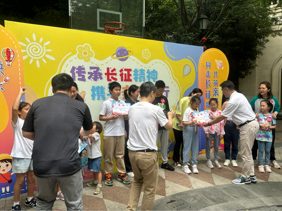 本网讯 6月1日,由经济管理学院与新江湾街道仁恒怡庭小区联合举办“同走长征路,共筑亲子情”社区亲子定向赛,26个家庭在大自然中“大手牵小手”,共同奔赴一场“体育、亲子、互动、生态”相结合的运动盛会。