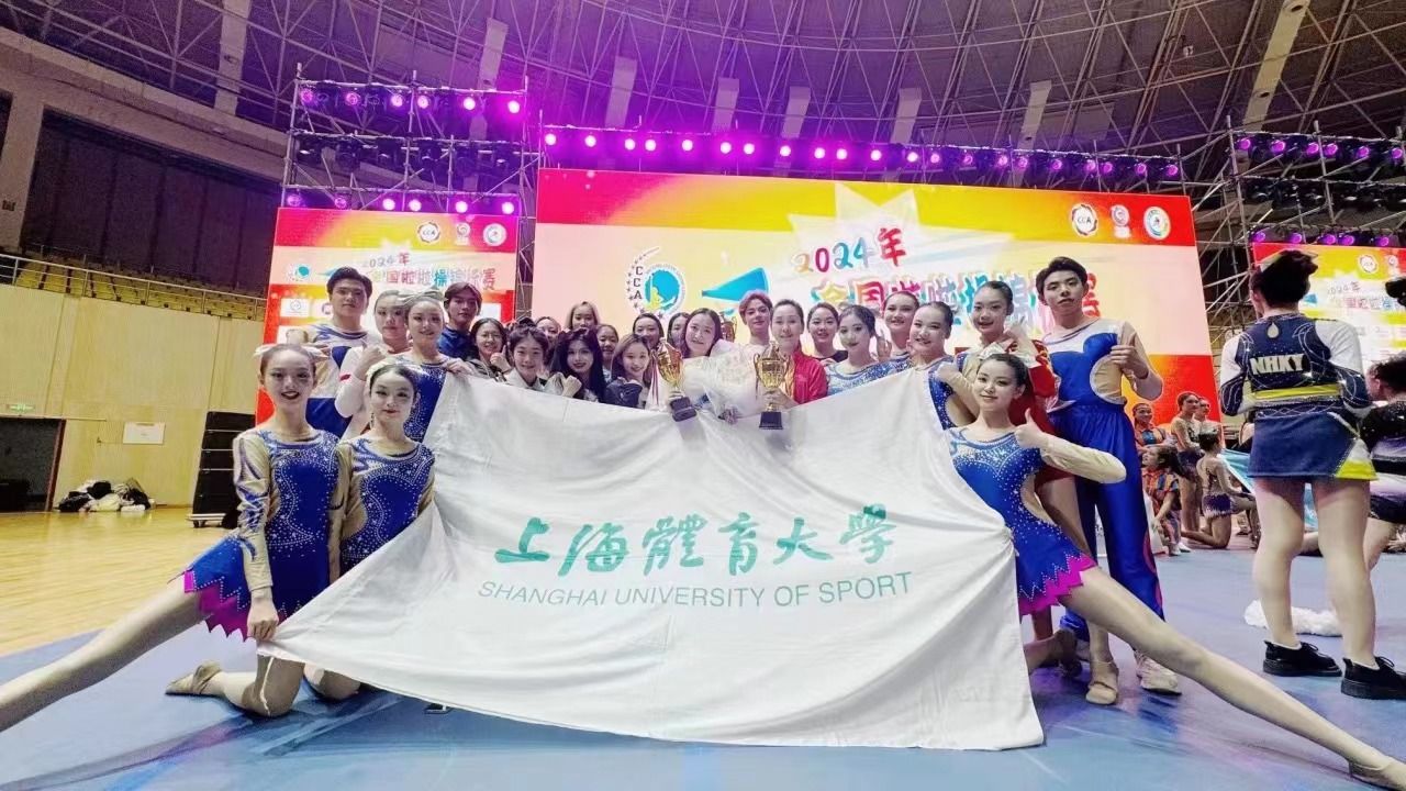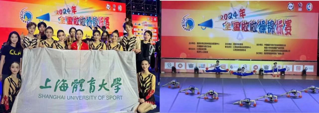 由体育教育学院教师陆颖娜带队的竞攀啦啦队在大赛上取得了爵士集体冠军、双人爵士季军的好成绩。