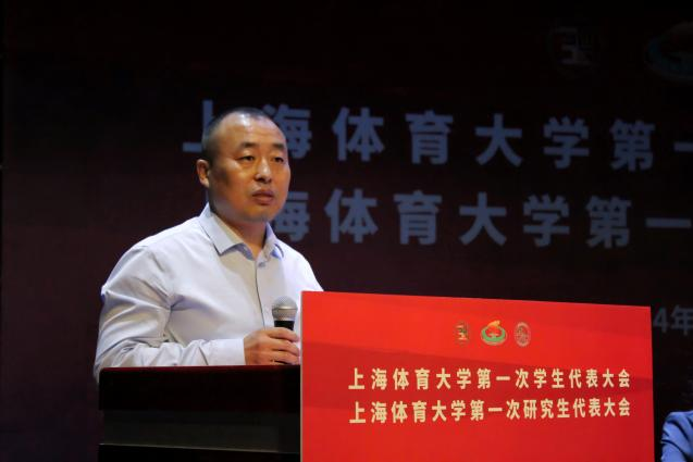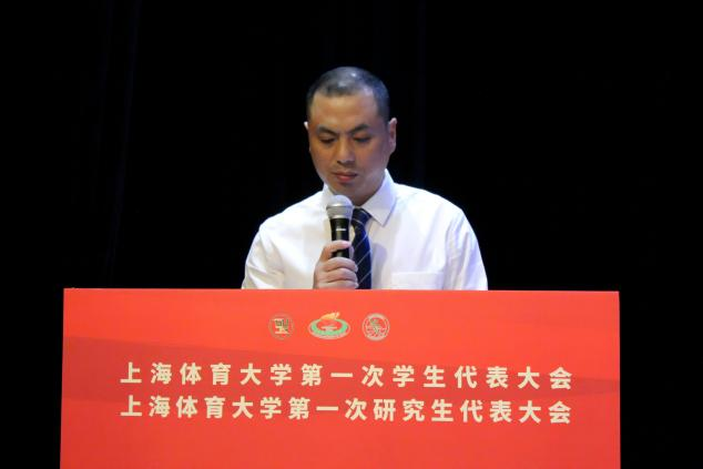 校党委学(研)工部、武装部副部长韩洪伟老师在闭幕式上总结讲话,代表学校向当选的各位同学及本次大会的胜利召开表示热烈祝贺,并寄语校学生会、校研究生会要继续紧扣时代主题,始终坚持与党和国家、学校、广大同学站在一起,做好学校与学生沟通的桥梁,成为同学信任的“第一选择”,成为“有体育特色,有体大风格”的学生组织。
