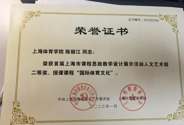 《国际体育文化》获上海市课程思政教学设计二等奖