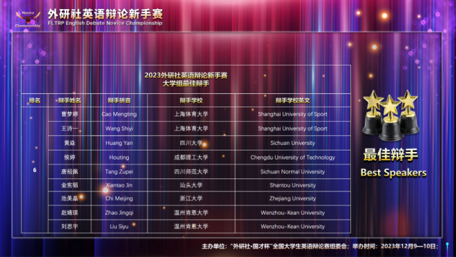曹梦婷获2023外研社英语辩论新手赛大学组最佳辩手
