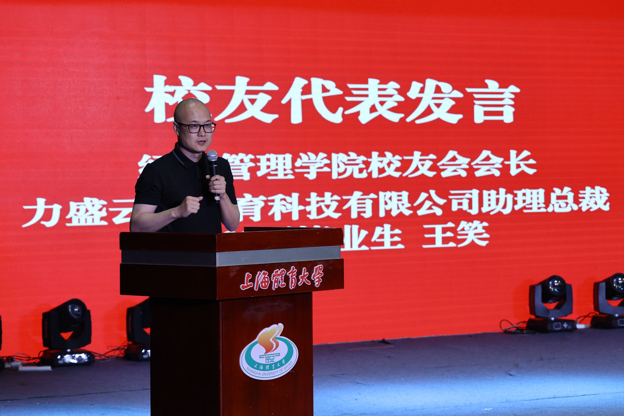校友代表经济管理学院校友会会长、力盛云动体育科技有限公司助理总裁王笑以“效率”“坚持”“微观”“欢迎”为关键词,鼓励同学们不负热爱,坚持追梦,继续关注和支持母校的发展。