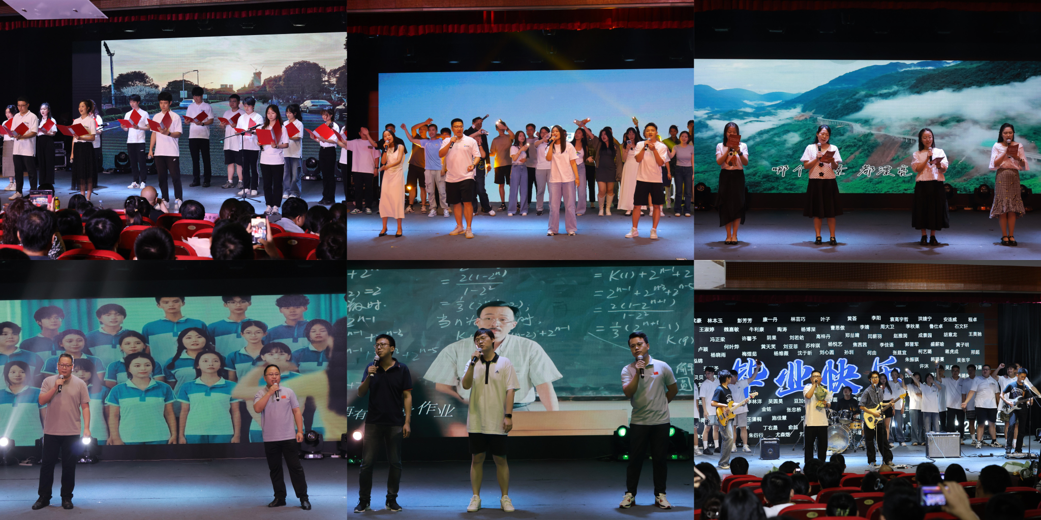 毕业典礼上,师生用精彩的文艺表演诠释离别的深情和期待,展望未来更好的相遇。本科生们朗诵了《奋斗者正青春》,用激昂的诗句表达了对未来的无限憧憬与坚定信念。研究生们合唱了《干杯》,用歌声表达了对大学生活的深深眷恋与不舍。教师团队带来的歌曲串烧《不说再见》将现场气氛推向了高潮,师生之间的深厚情谊在歌声中得到了完美诠释。最后,毕业典礼在乐队演奏的《光辉岁月》中圆满落幕。
