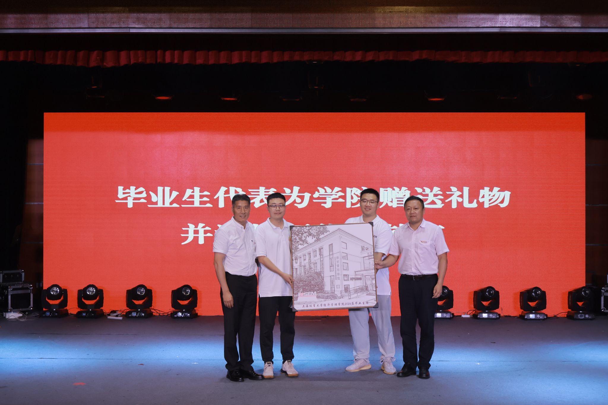 毕业生代表向教师代表献花,表达了对母校和恩师的感激之情。教师代表为毕业生送上美好祝福,并赠送临别礼物。