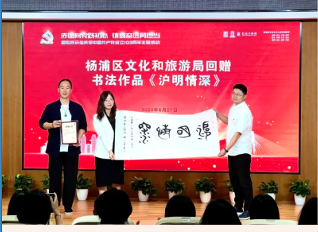 福建省三明市拥有深厚的历史文化底蕴和丰富的非物质文化遗产资源,为了促进福建三明与上海杨浦两地文化交流,在活动现场,福建三明市三元区文体和旅游局副局长谢治军展示了《义勇军进行曲》曲谱非遗微雕作品创作历程,并向国歌展示馆捐赠《义勇军进行曲》曲谱非遗微雕作品。作为沪明情深的见证,这不仅仅是一个简单的捐赠,更是沪明共同传承红色文化,弘扬爱国主义精神的一次生动实践,为国歌展示馆馆内收藏国歌题材优秀原创作品再添新篇。通过非遗技艺的传播,能够让更多的人了解红色历史,感受红色文化的魅力。杨浦区文化和旅游局党组成员、副局长朱音奇回赠了书法作品《沪明情深》。