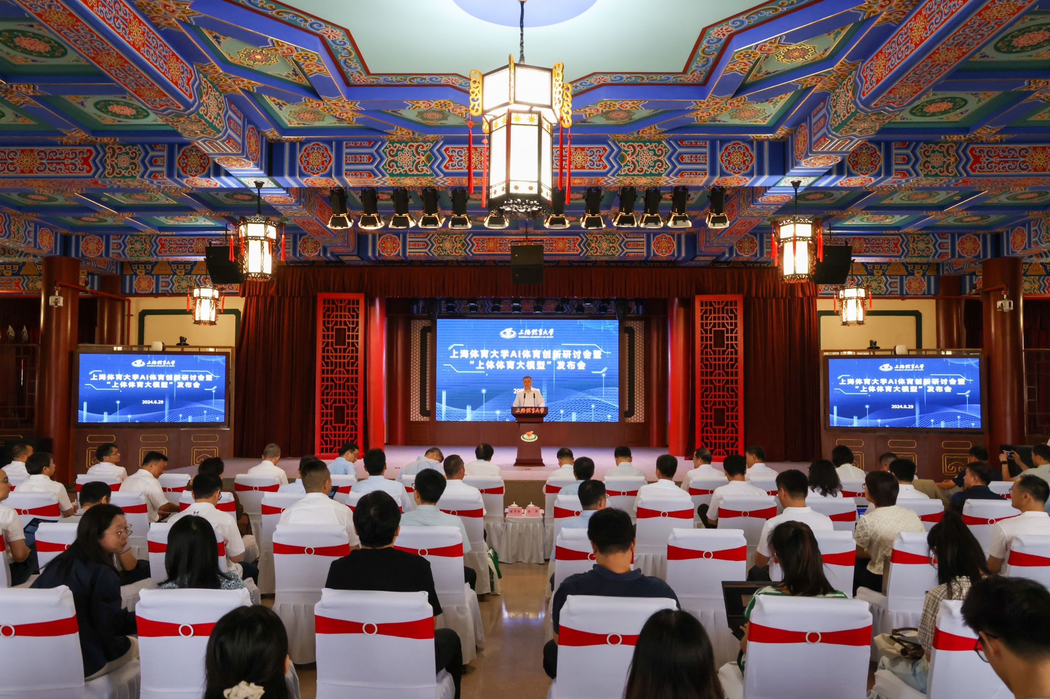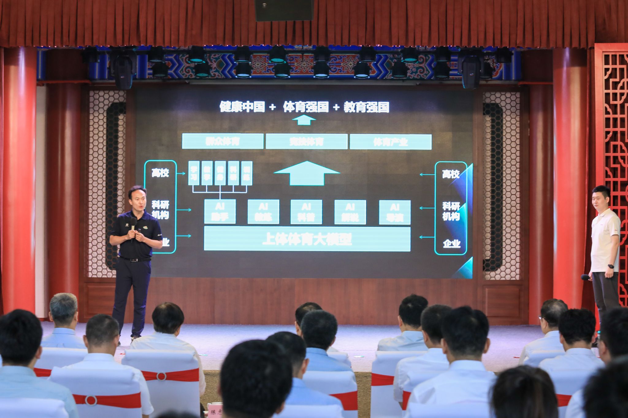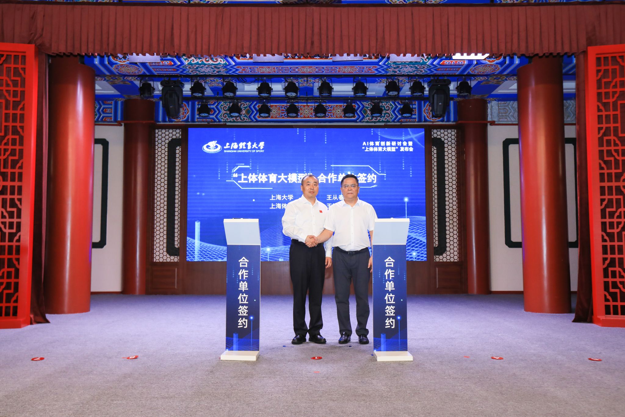 活动上,上海市政府副秘书长王平,国家体育总局科教司司长陈志宇,上海市教卫工作党委副书记、上海市教育委员会主任周亚明,国家体育总局体育科学研究所副所长杨杰,上海市体育局党组副书记、副局长陆檩,上海市杨浦区副区长王浩,上海市大学生体育协会会长薛明扬,上海大学党委常委、副校长王从春,今年会网站党委副书记、校长毛丽娟共同发布了“上体体育大模型”。