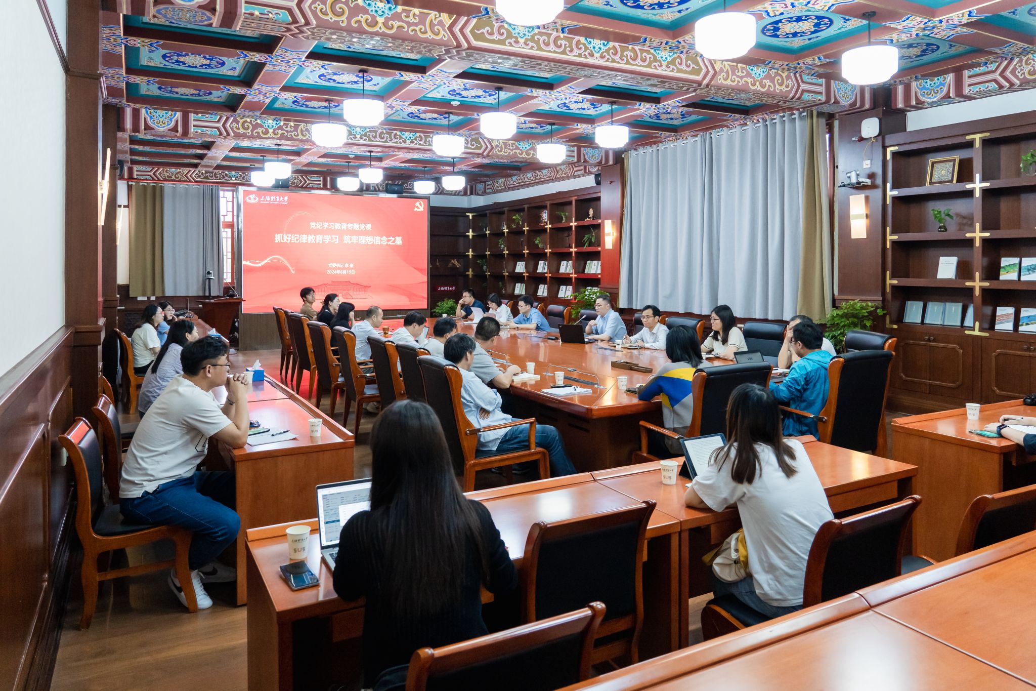 本网讯  近日,校党委书记李崟以“抓好纪律教育学习 筑牢理想信念之基”为主题,为马克思主义学院直属党支部和机关第一党支部全体党员讲授党纪学习教育专题党课。党课由马克思主义学院直属党支部书记、院长胡德平主持。