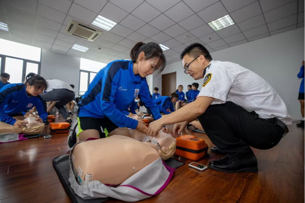闵行中心医院急救中心为女足队员们提供了医疗急救专业知识培训,并颁发了心肺复苏(CPR)急救技能证书。通过系统讲解和实际体验CPR的急救步骤,队员们深刻认识到CPR在运动中的重要性,有助于进一步提高训练的科学性、安全性和突发事件中的自救能力。
