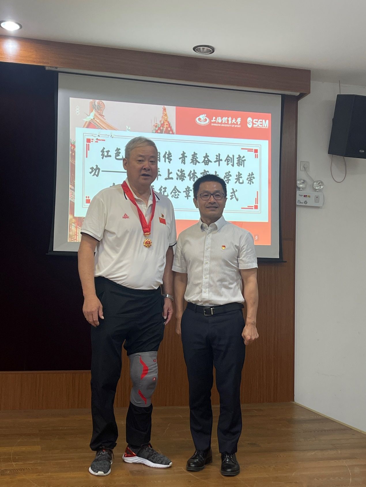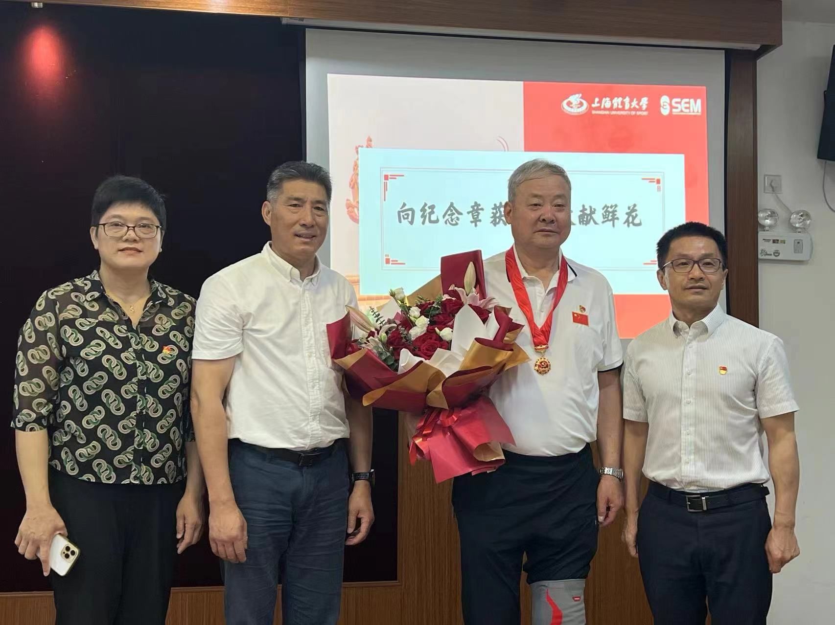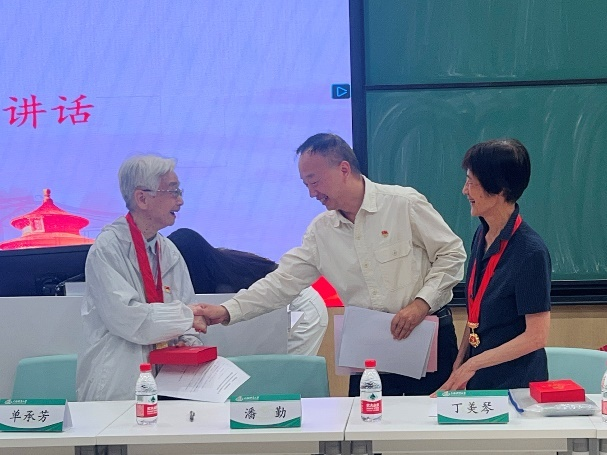 7月1日下午,学校召开庆祝中国共产党成立103周年座谈会暨党纪学习教育推进会。校党委书记李崟首先代表学校党委向广大党员致以节日的问候!同时会同党委副书记、校长毛丽娟为丁美琴、马吉光“光荣在党50年”老党员代表颁发纪念章。各二级学院党委会同退休党委隆重举办了“光荣在党50年”纪念章颁发仪式,为50年党龄的老党员送上特殊的节日礼物。校党委副书记潘勤、副书记杨玲、副校长魏建军分别为新闻与传播学院退休的丁美琴、单承芳,竞技运动学院退休教师马吉光,经管学院的刘清早教授颁发了“光荣在党五十年”纪念章,向他们送去党组织的关怀,褒扬她们为党的事业作出的贡献。