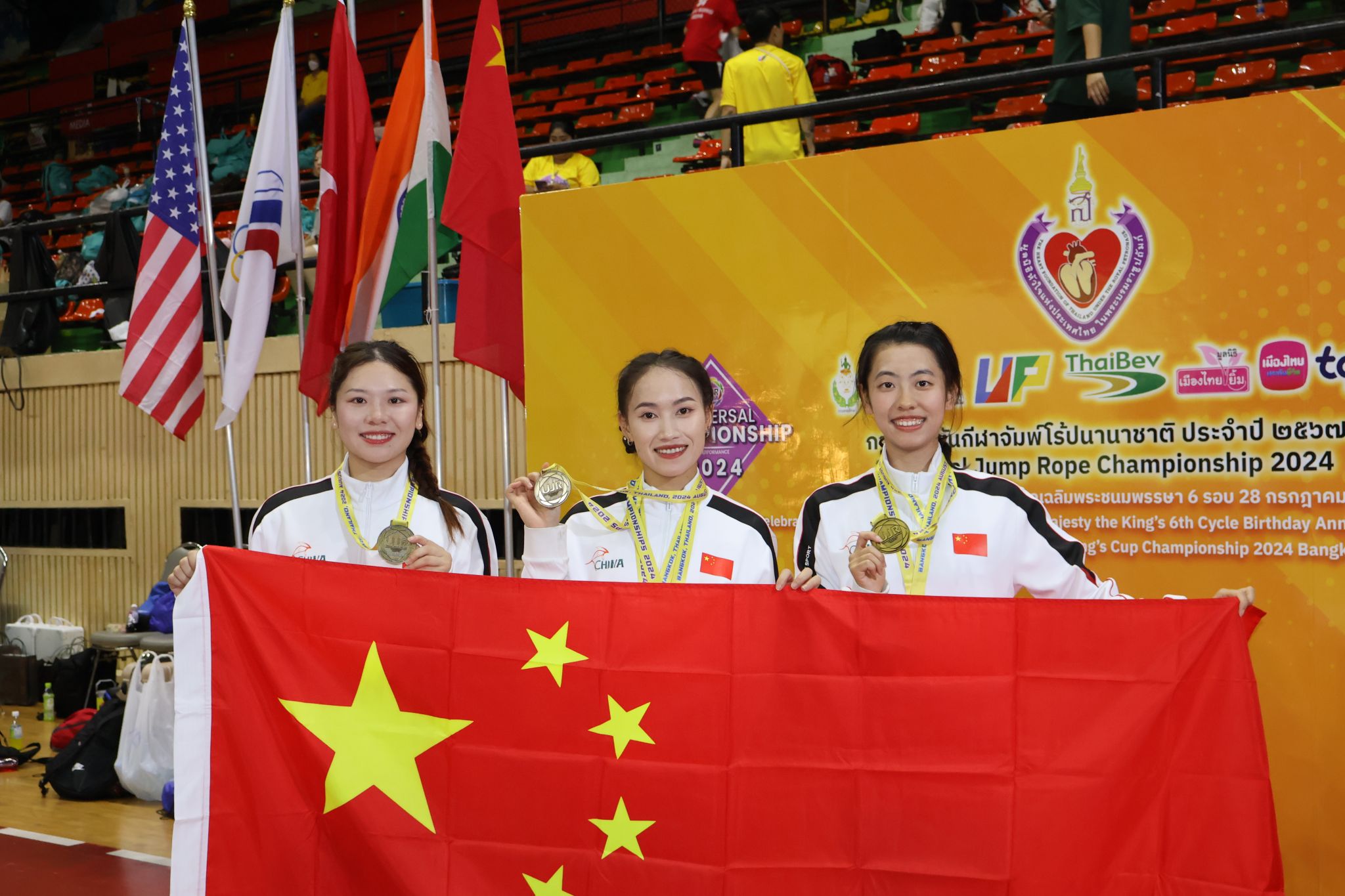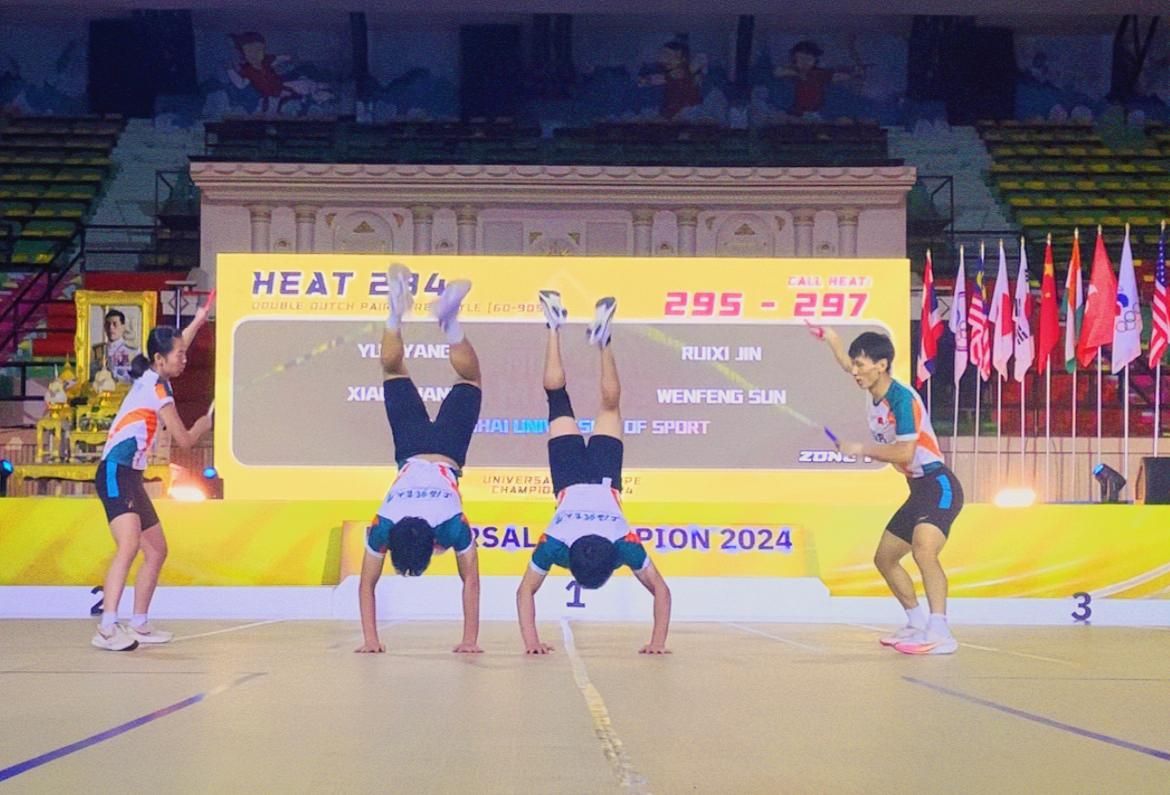 本网讯 2024年8月16日至20日,世界跳绳锦标赛在泰国曼谷国家体育馆举行。今年会花样跳绳队6名队员在主教练韩耀刚的带领下,经过激烈角逐,最终取得了2金2银的优异成绩。