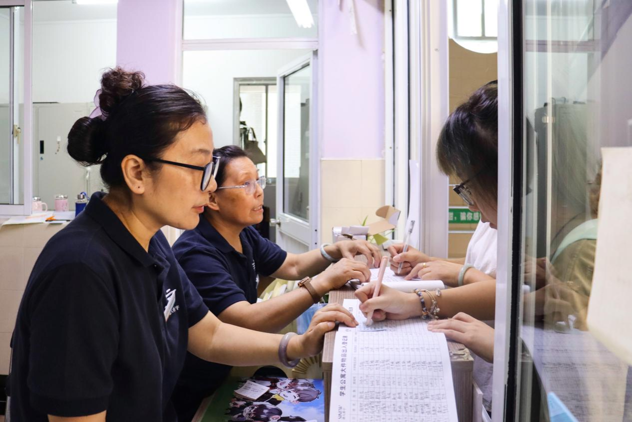 来到了宿舍区,新生们和未来几年将会一直守候陪伴的宿管阿姨见了第一面,虽初次见面,便已感受到她们温暖的守候。将行李安放妥当,携带必需的文件,学生们便轻装简行前往各自学院。