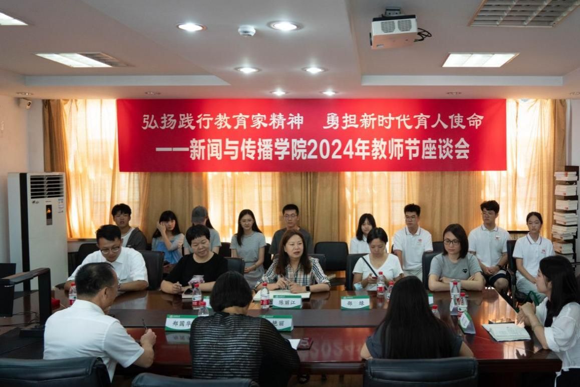 本网讯  9月9日上午,在第40个教师节来临之际,新闻与传播学院在学院中间会议室举行2024年教师节座谈会,深入学习贯彻党的二十届三中全会精神和习近平总书记关于教师队伍建设的重要指示精神。新传学院党委书记高艳丽、副院长(主持工作)郑国华以及学院新生班主任代表、辅导员代表以及学生代表参加会议。