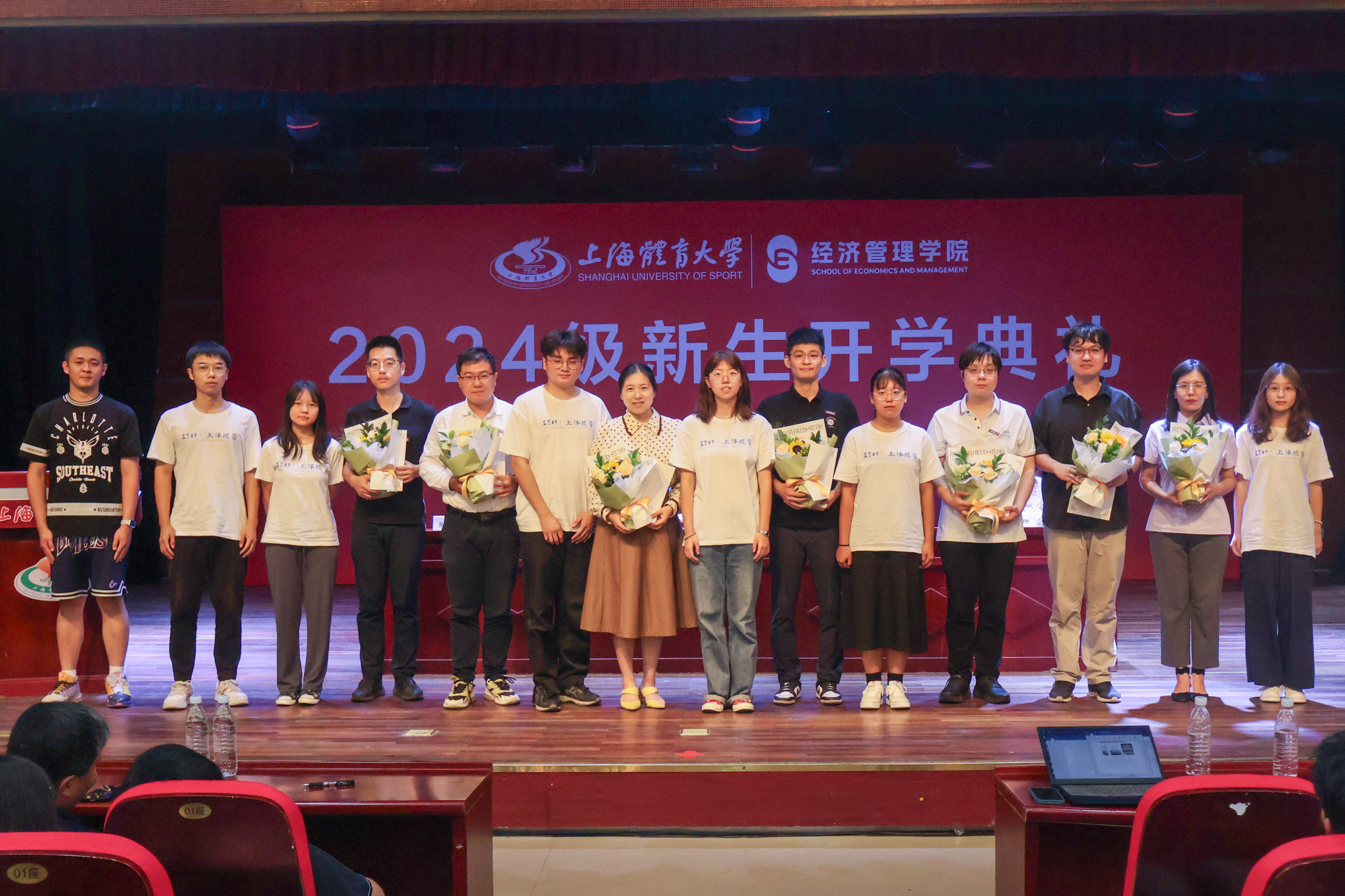 本网讯 秋风为序启征程,奋楫前行谱新篇。9月11日下午,经济管理学院2024级新生开学典礼暨新教师入职仪式在活动中心小剧场举行,学院领导班子、新进教师、24级本科生班主任、全体辅导员与全体新生一起见证了这庄重而温馨的时刻。开学典礼由学院党委副书记、副院长王珊珊主持。