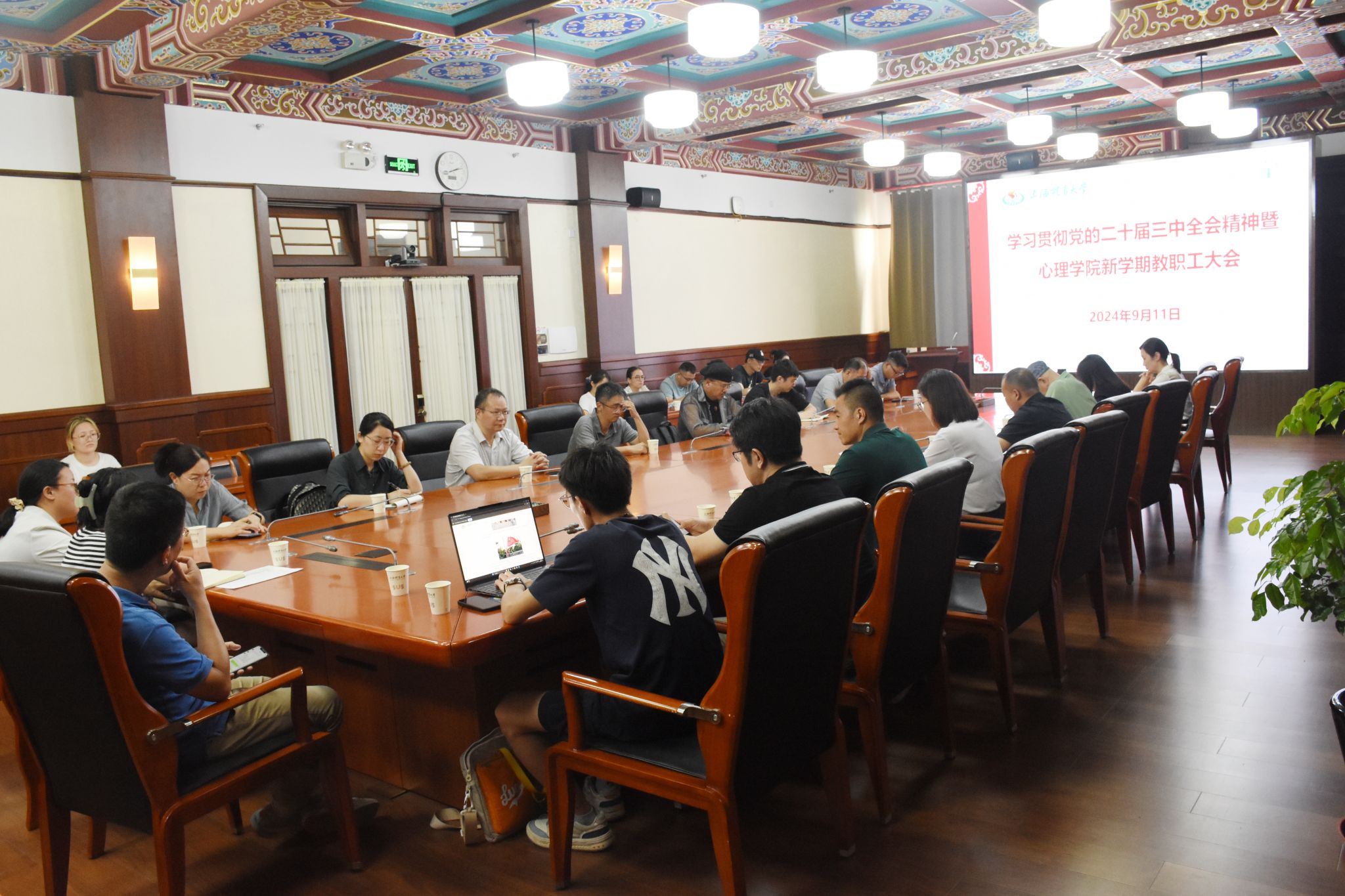 本网讯 9月11日,心理学院在绿瓦大楼第四会议室召开学习贯彻党的二十届三中全会精神暨心理学院新学期教职工大会。校党委副书记、副校长王继红,心理学院领导班子及全体教职工出席大会。大会由心理学院党总支书记梅朵主持。