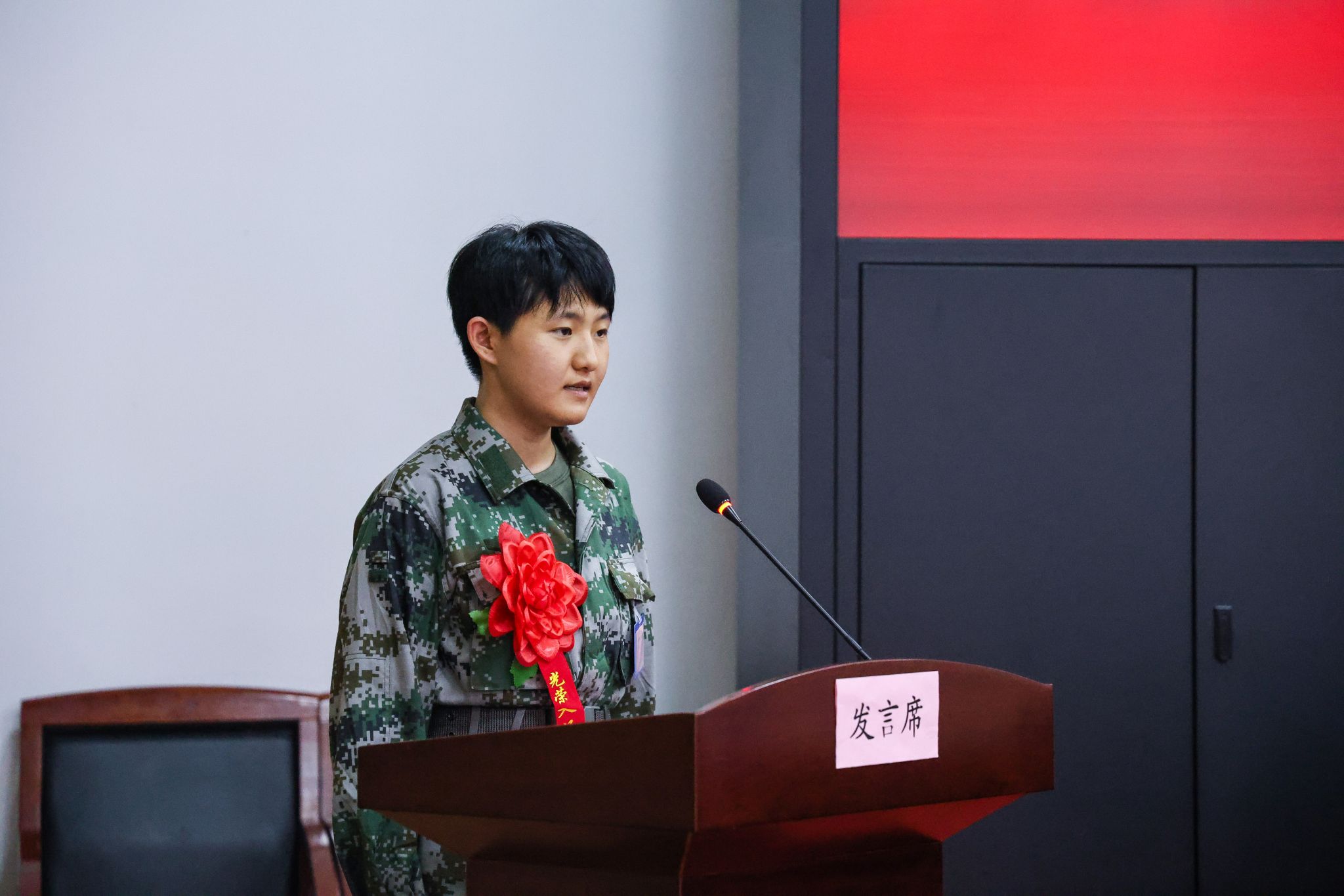 新兵代表赵晓萍同学在发言中表达了对领导、老师、家长们真挚的感谢,并表示:作为上体学子,将充分发挥团结一致、敢打敢拼体育人的优良品德,将热烈的体育精神融入到学习、训练中去。用强健的体魄熔铸军魂,怀激昂的斗志保家卫国。