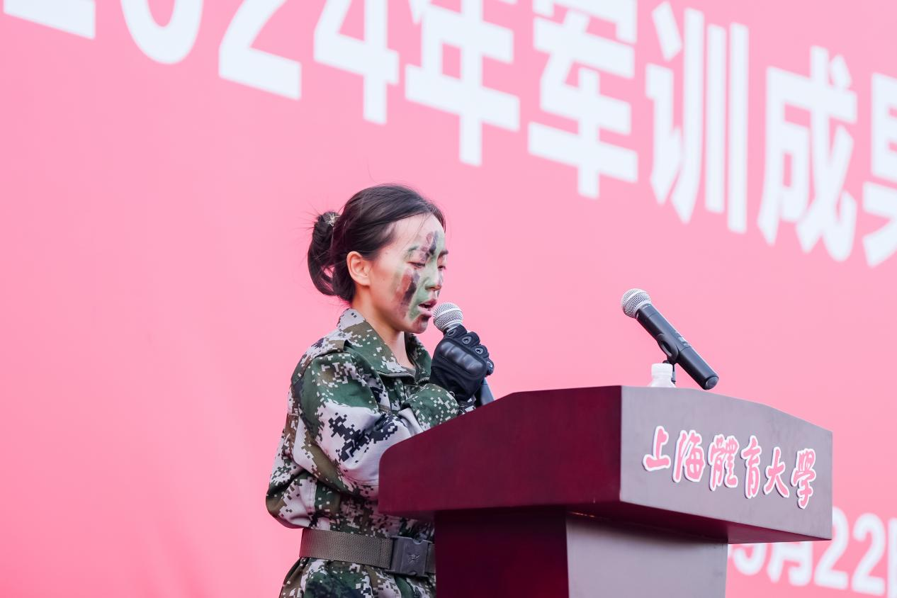 在“经风历雨,蜕变成长”军训总结及表彰环节,来自武术学院的参训学生代表任锦珂上台发言,分享了她在军训中的收获与感悟。她表示,军训不仅是对我们身体素质的锻炼,更是对我们意志品质的磨砺。还让我们学会了如何迅速融入集体,如何在困难面前保持坚韧不拔,如何在挑战中激发潜能,共同成长。