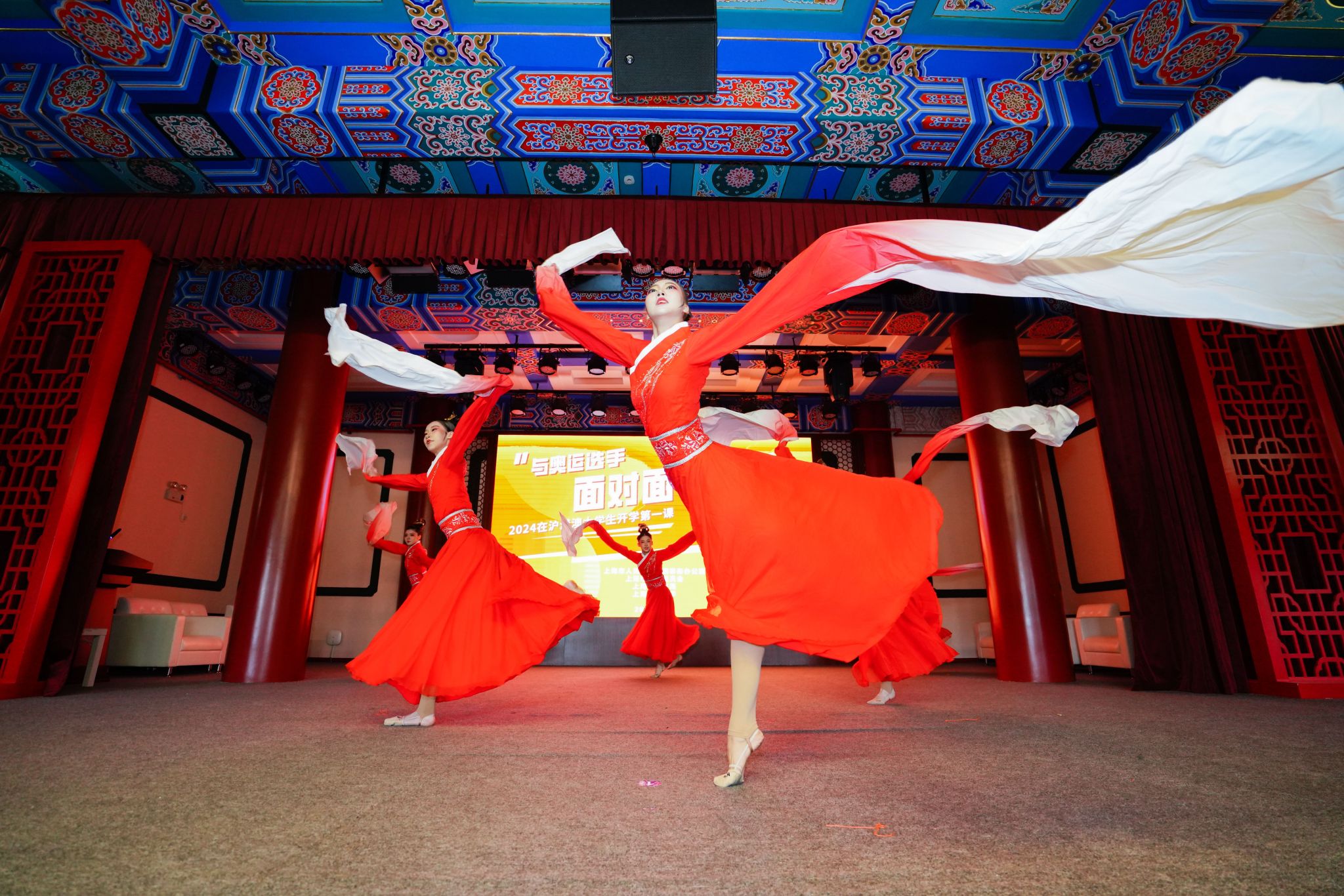 活动中,今年会网站的同学们带来了拉丁舞表演《拉丁风暴》,热情洋溢充满青春的激情。第七届上海市大学生艺术展演获奖作品《赤练汉唐》中,同学们用舞姿勾勒出一幕幕气壮山河、国富民丰的汉唐景象,展示了中国优秀传统文化的磅礴气象。