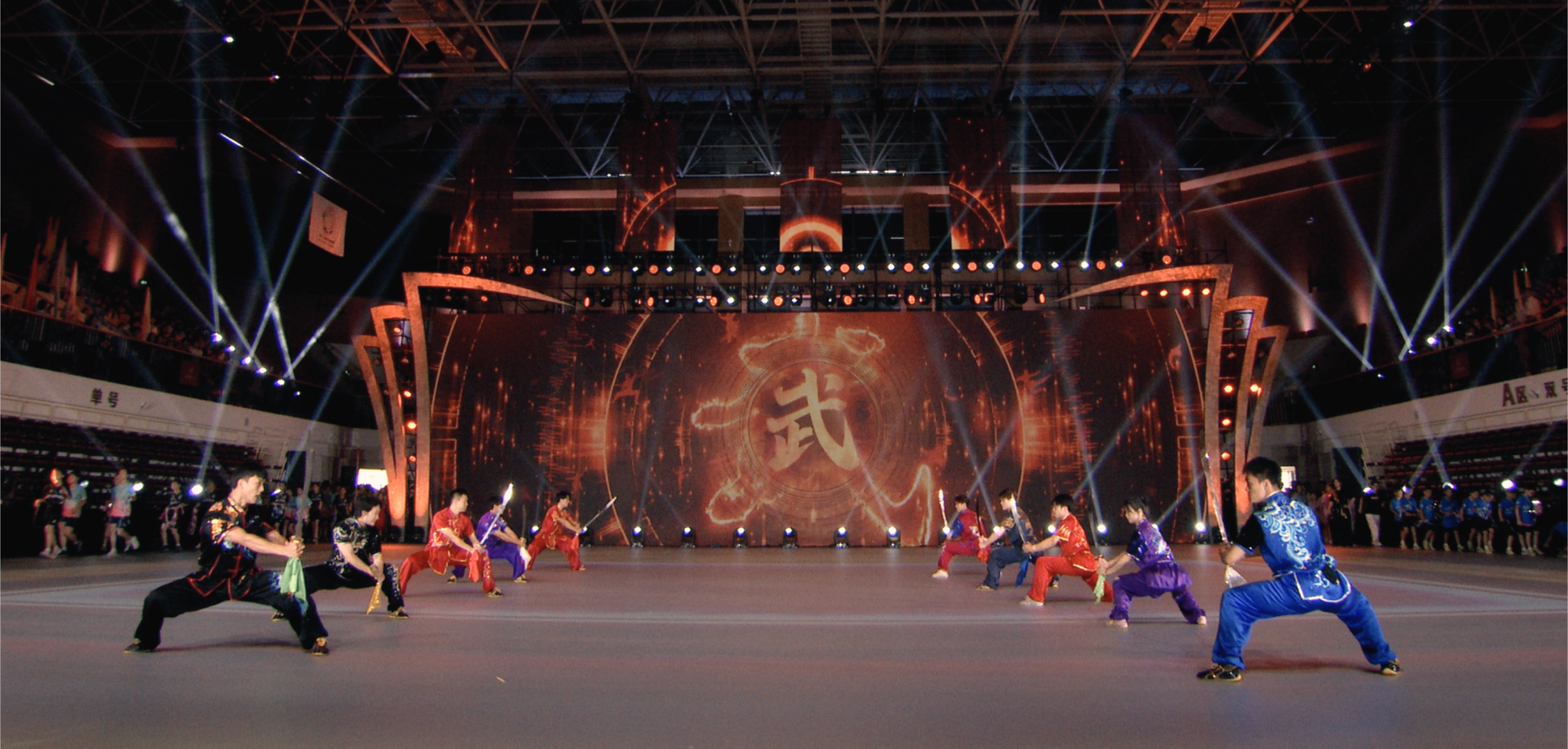 表演中,上体武术学子尽显传统武术美学,随着一幕幕中国武术风的画卷徐徐展开,他们化身成武林高手刚柔并济、灵动飘逸,从拳法到刀术,从枪法到掌法,用苍劲有力的一招一式定格成“枪声刀影,鼓角齐鸣”的磅礴气势,充分展现了中华武术的独特魅力,传递了武术文化的深厚底蕴。