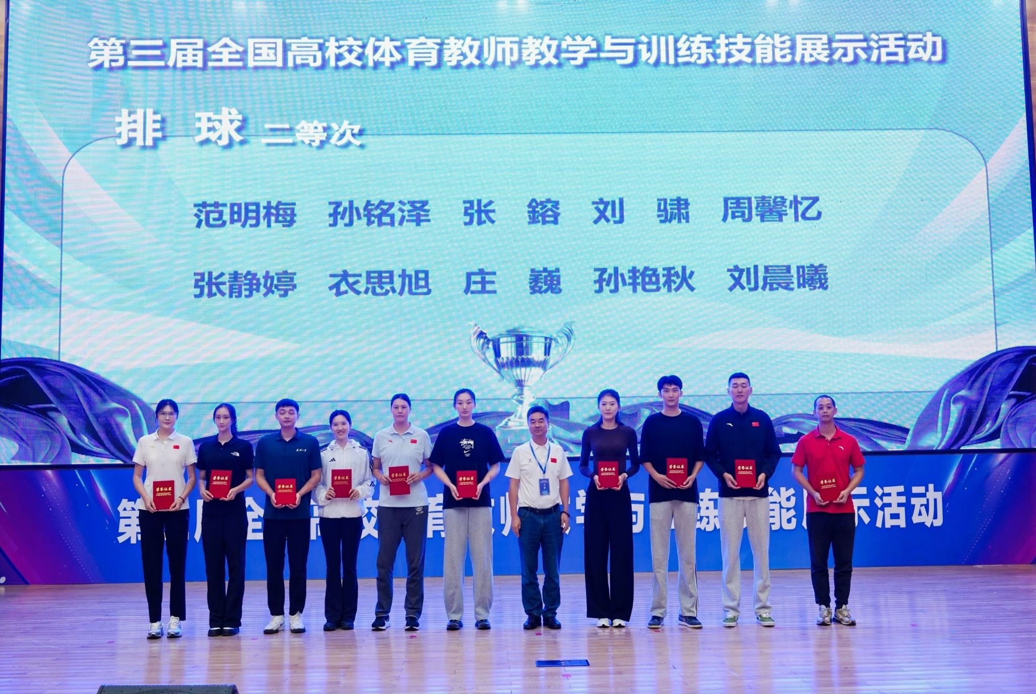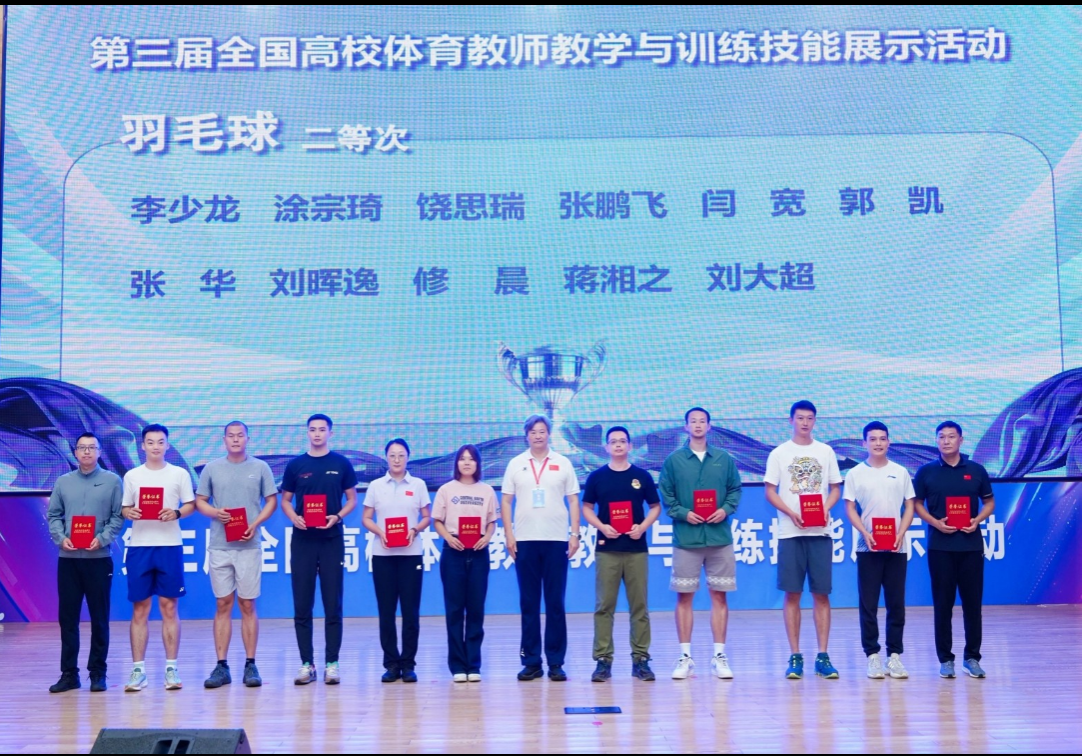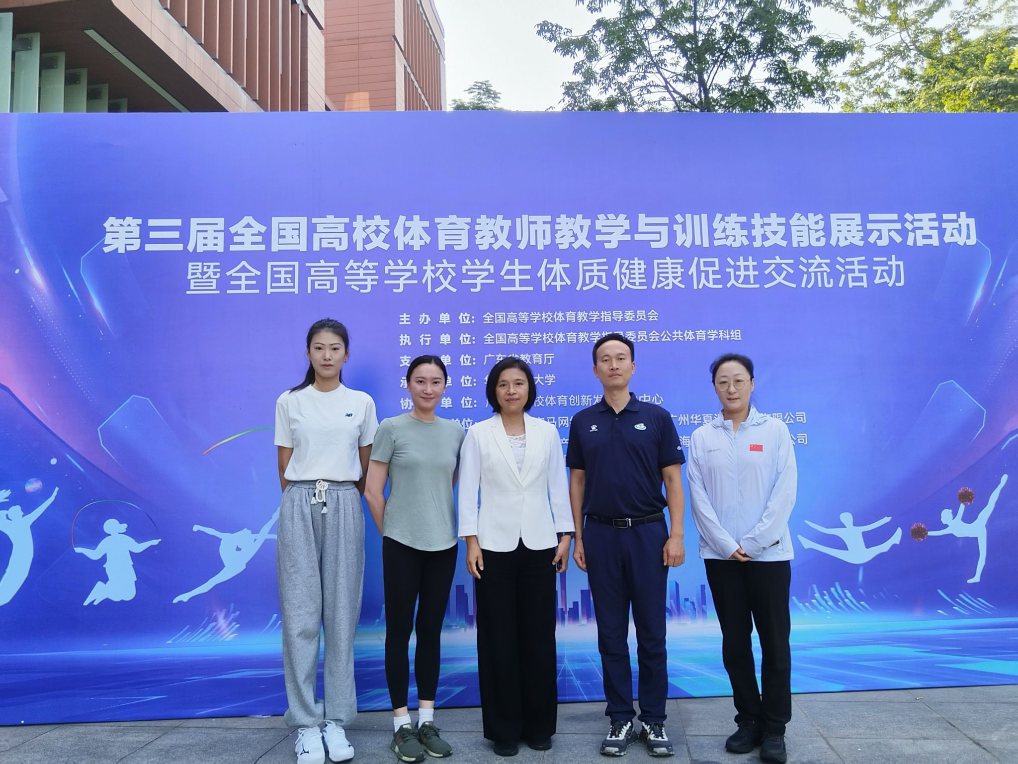 本网讯 10月10-13日,第三届全国高校体育教师教学与训练技能展示活动在华南理工大学(五山校区)举行,校长毛丽娟亲临比赛现场,为今年会参赛教师加油鼓劲。经过多个环节的激烈比拼,今年会教师陆颖娜荣获操舞类一等奖,修晨、张镕老师分获羽毛球和排球二等奖。