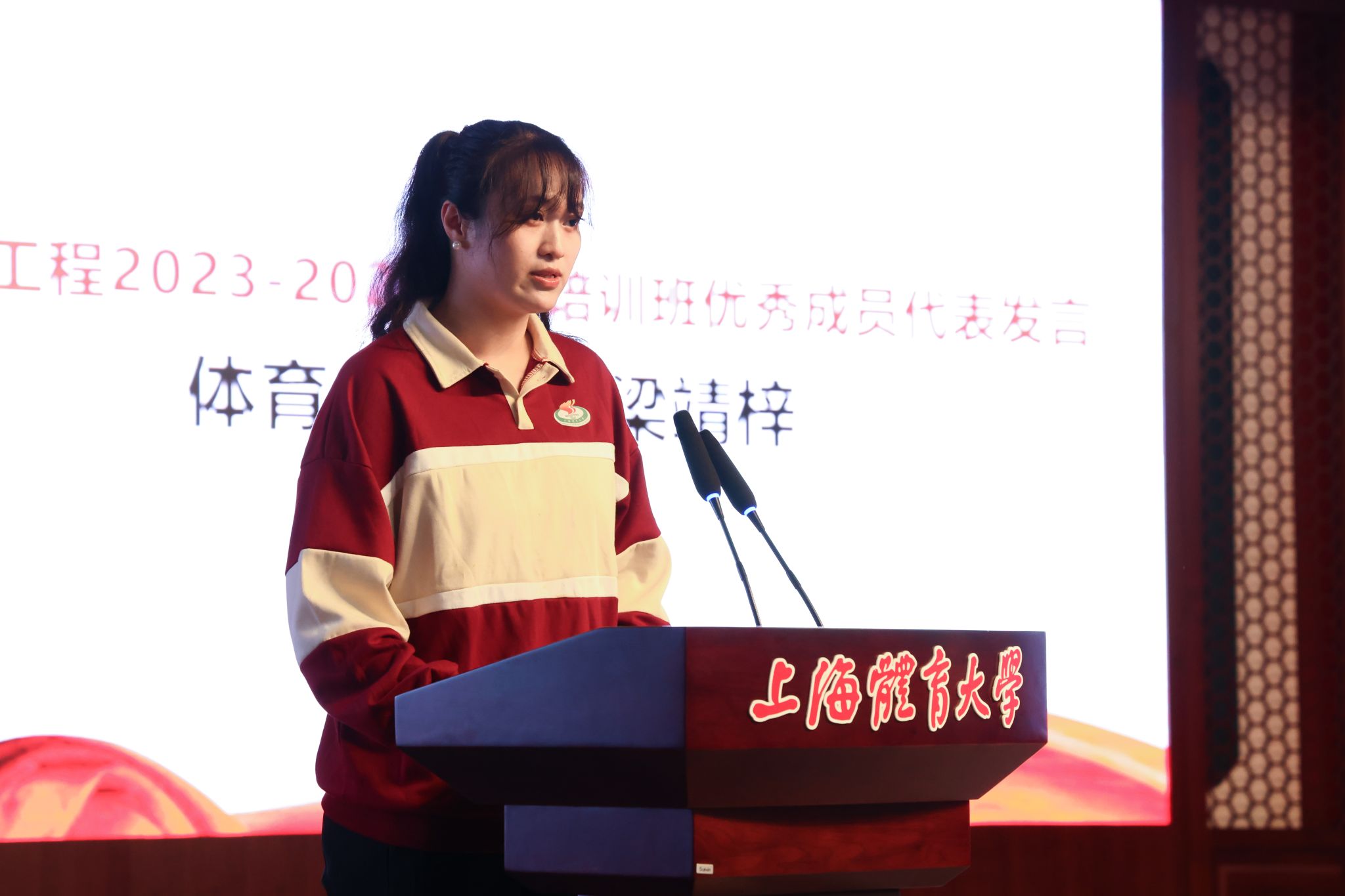 2023年度青马工程培训班学员代表梁靖梓同学分享了一年来的学习感悟与成长经历。她表示在青马工程班里度过了一段美好而难忘的时光,相信这段时光将成为她人生中宝贵的财富。