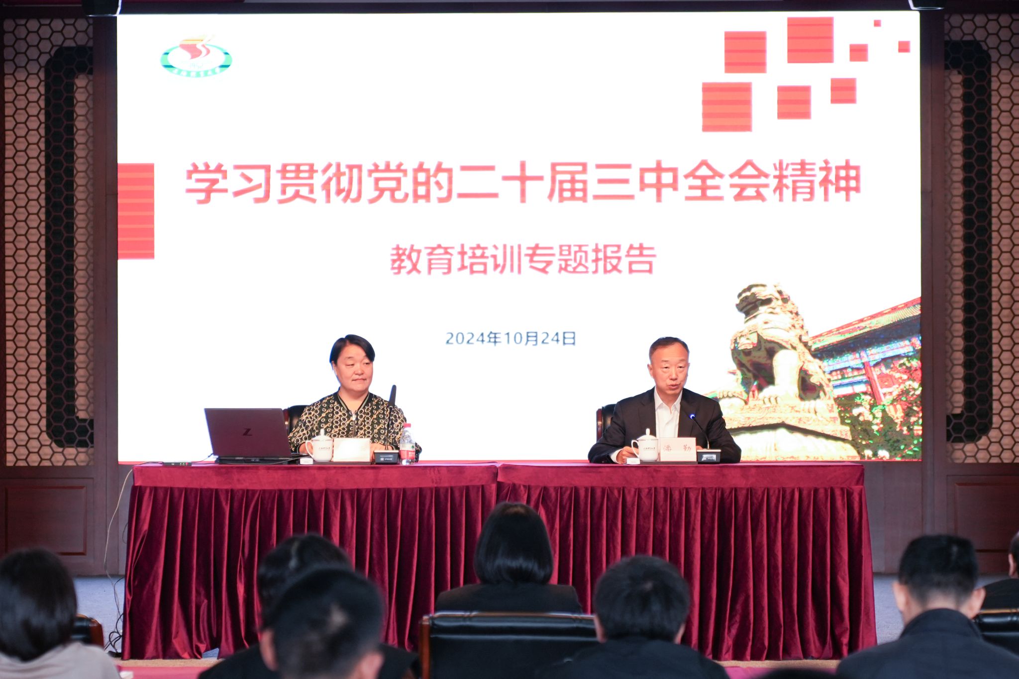 本网讯 学习和贯彻党的二十届三中全会精神,落实全国教育大会精神,是当前和今后一个时期学校的重大政治任务。10月24日上午,学校党委在绿瓦大礼堂举行学习贯彻党的二十届三中全会精神教育培训专题报告,此次专题报告邀请到华东政法大学中国法治战略研究院研究员董秀华作专题辅导报告。党委副书记潘勤主持专题报告,校领导及中层领导人员参与了培训。