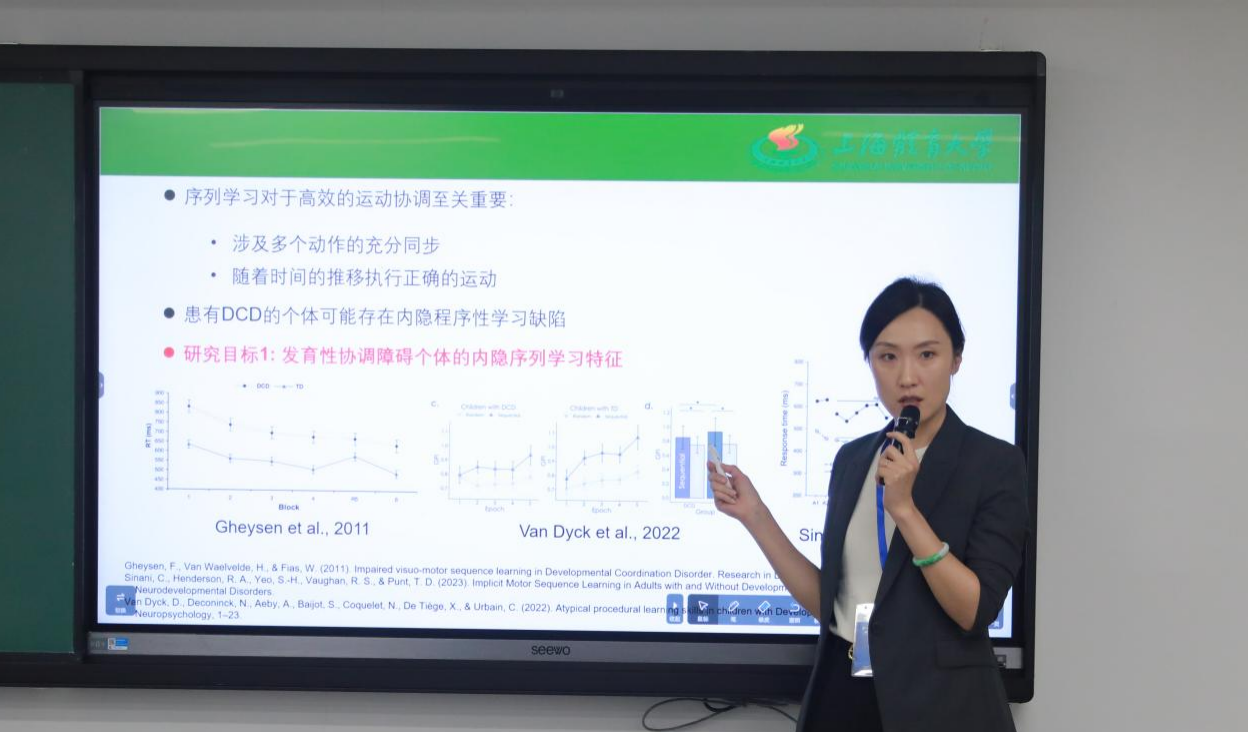 来自上海健康医学院的纪之光则从运动干预的视角,探讨了运动技能的联系对发育性运动协调障碍儿童认知能力的提升,提出了基于现有体育课程有效干预发育性协调障碍的方案。