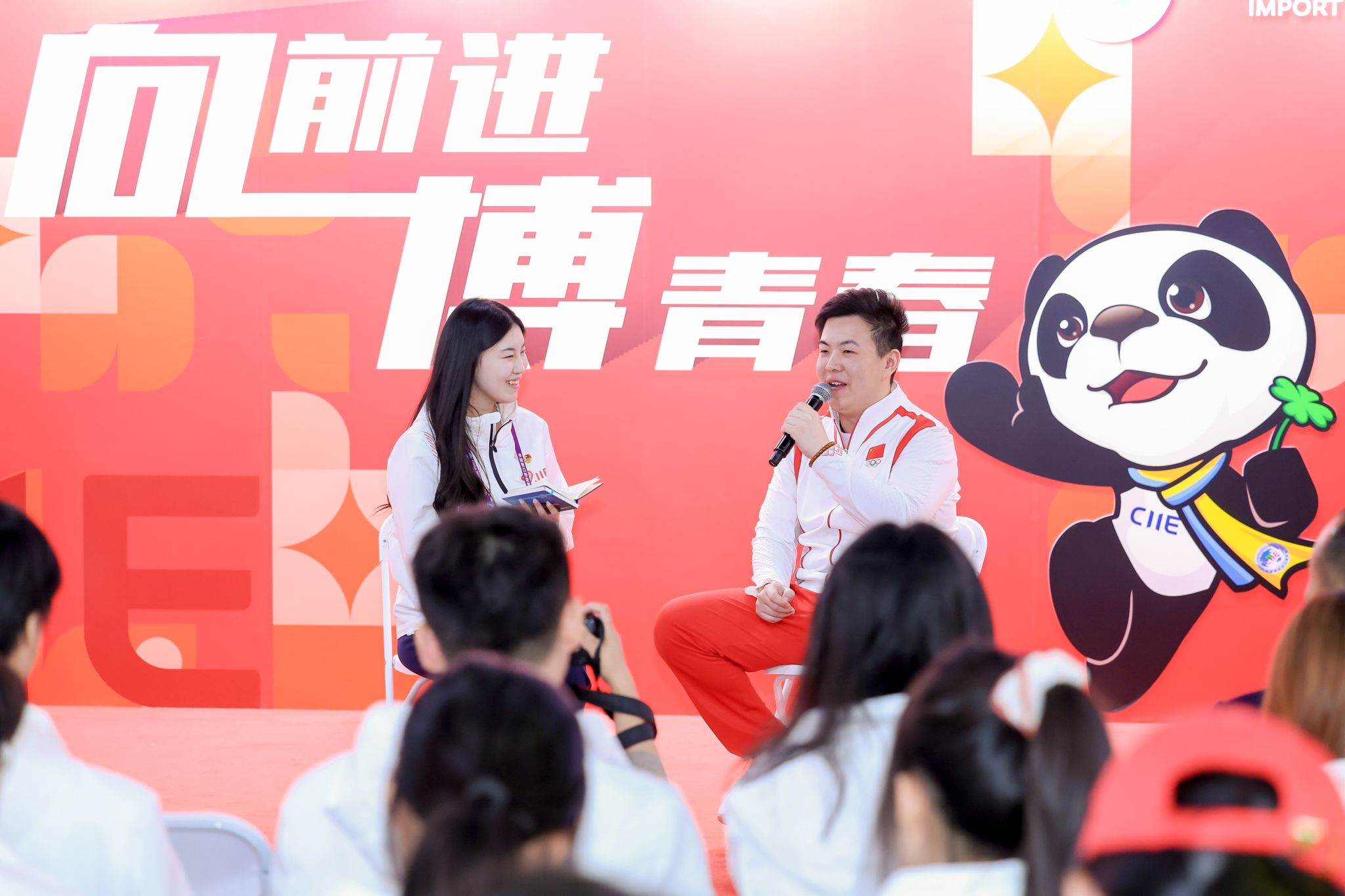 上午9点半,第七进博会志愿者之家主题活动之“奥运五环”到“进博四叶草”在小叶子之家“梦想舞台”开展。毛丽娟校长与上体在校生、中国男子射击运动员、2024年巴黎奥运会男子25米手枪速射季军王鑫杰共同为小叶子们上了一堂特殊的“微党课”。