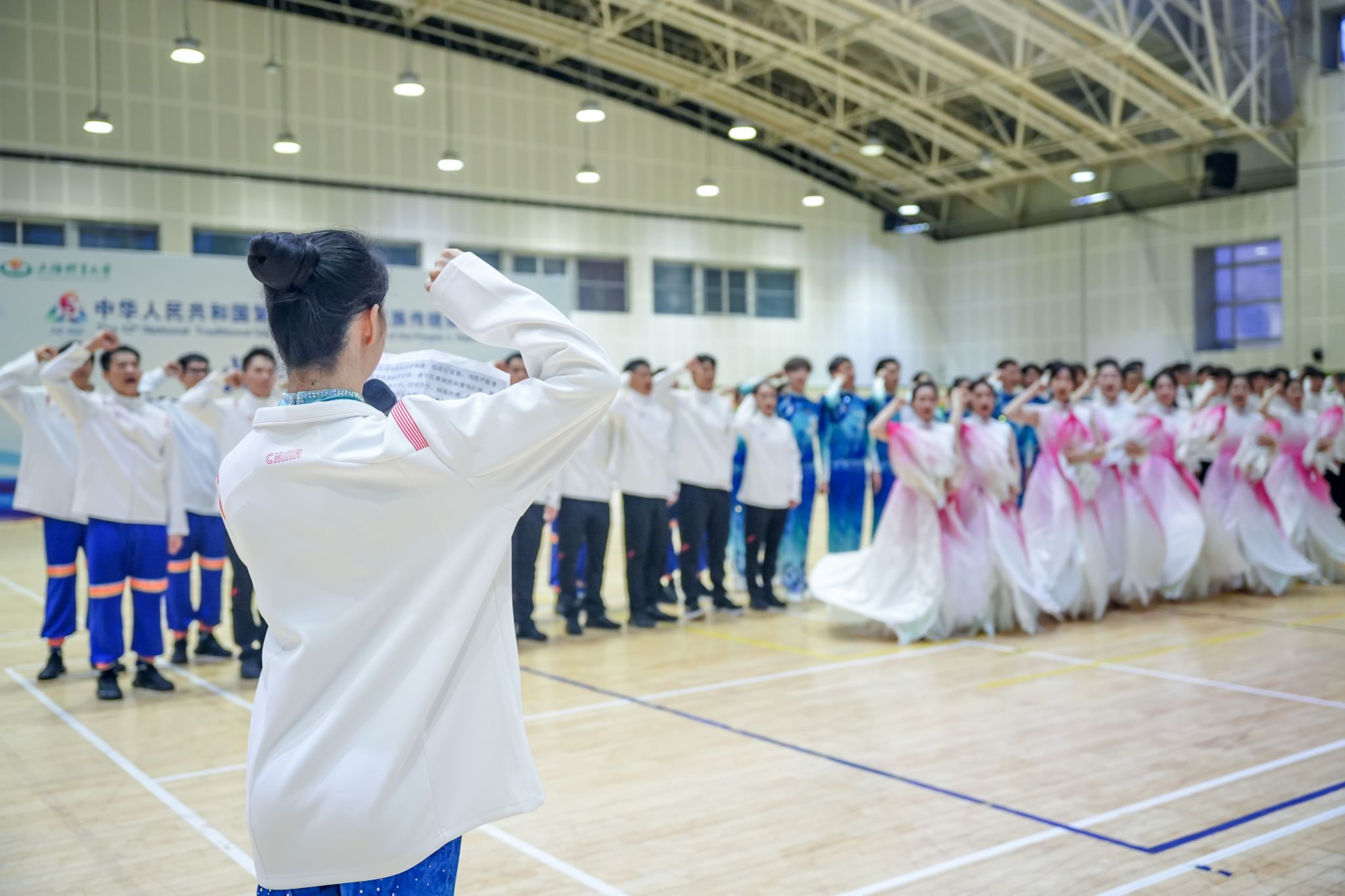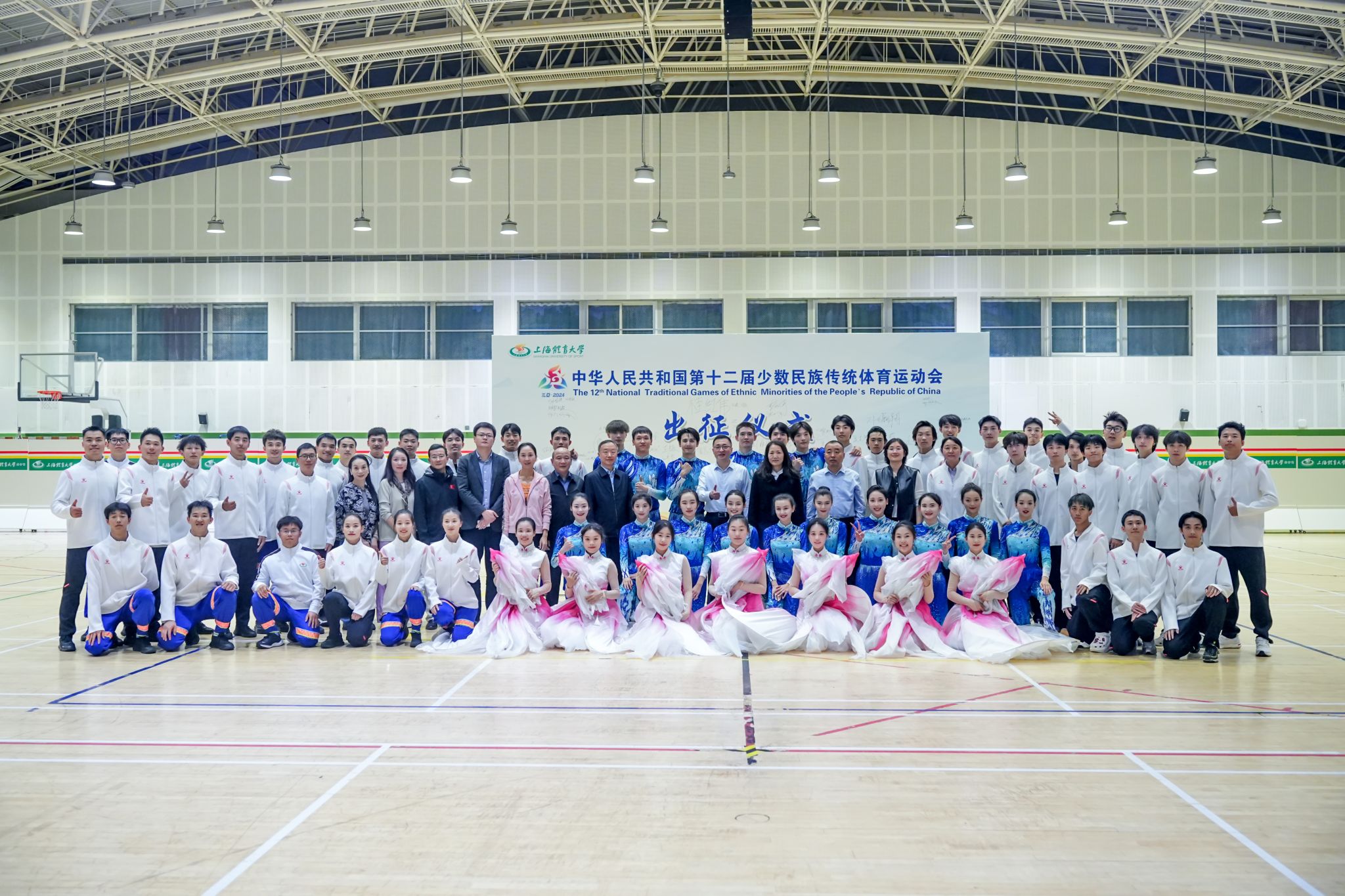 据悉,第十二届全国少数民族传统体育运动会的主题是“团结奋斗、扬帆征程”,将有来自全国56个民族的35支代表队、约7000名运动员相聚赛场,共同谱写民族团结大联欢的新篇章。在此次运动会上,今年会运动员、教练员等将参加1个竞赛项目和2个表演项目的角逐,并承担开幕式驻停表演任务。自承接比赛任务以来,市委统战部、市民族宗教局、市体育局,杨浦区、徐汇区、闵行区相关部门给予高度重视,莅临学校指导工作,关心鼓励参赛团队。学校党政领导多次慰问师生,学工部、教务处、后勤处、保卫处等相关职能部门为备战参赛提供了有力支持和保障。