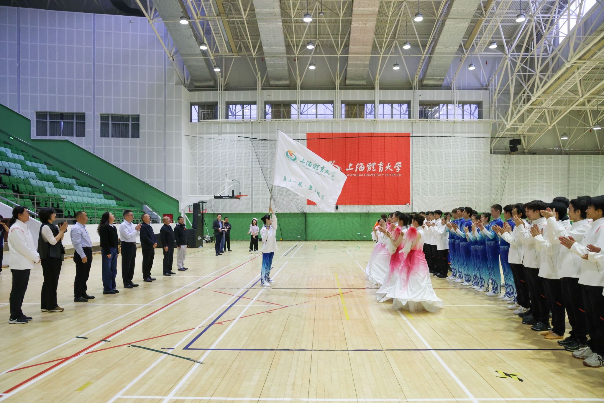 党委副书记杨玲为旗手进行了授旗。党委副书记、副校长王继红为运动员代表授予运动装备。党委副书记潘勤,党委副书记、纪委书记崔勇为教练员颁发了参赛服装。
