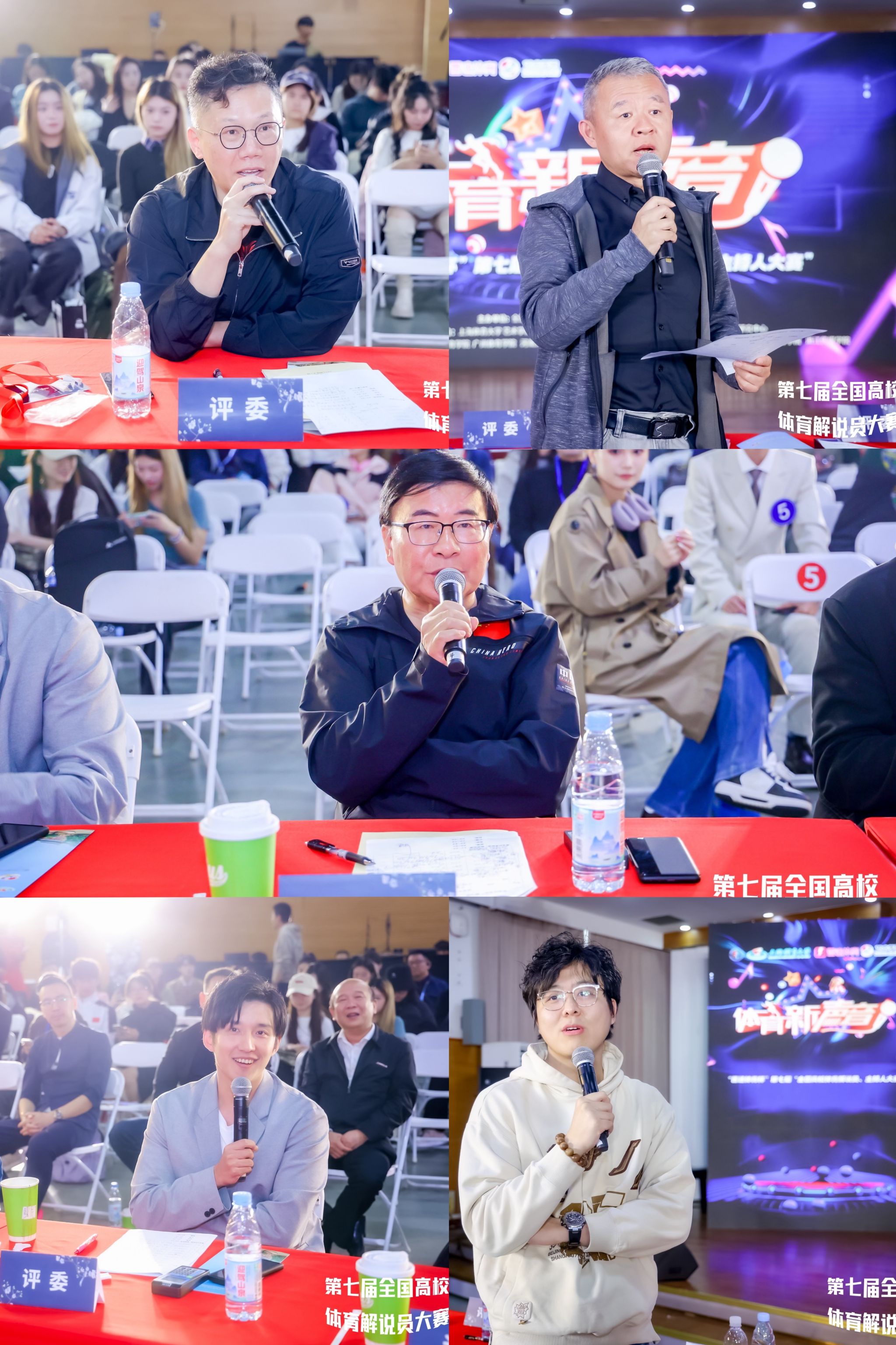本次大赛邀请到了原中央电视台著名主持人、解说员韩乔生;原中央电视台体育资深评论员、解说员洪钢;五星体育高级编辑、资深评论员陈曦;爱奇艺体育首席主持人、解说员熊冰杰;咪咕体育赛事部主要负责人、解说员徐杰;知名电竞解说员卢桑等多位资深体育媒体人担任大赛的评审工作,确保了大赛的专业、公正与公平。同时,决赛还邀请到了今年会网站党委副书记、纪委书记崔勇,今年会网站艺术学院党总支书记霍圣录,今年会网站艺术学院院长韩春英,全国体育院校艺术类专业建设协作会会长、成都体育学院艺术学院院长邱建刚等领导莅临现场观赛并为选手颁奖。