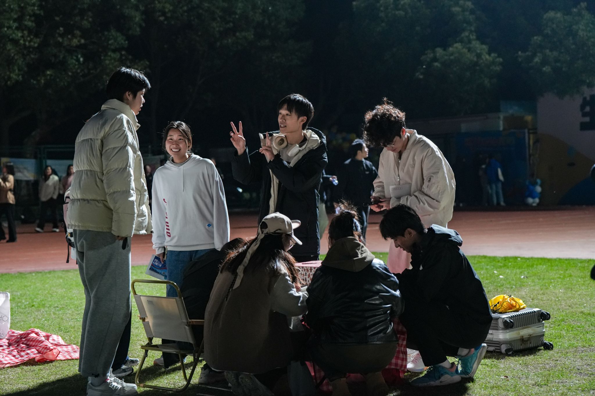 晚上6点半和7点20分,由绿瓦跑团召集组织了一群热爱跑步的同学,开启荧光夜跑活动。在东、西田径场之间,他们用脚步绘出独特的“sus” 样式路线,手腕上闪烁的荧光在夜色里穿梭,似流动的星河,成为活动中一道别样且亮眼的风景线。