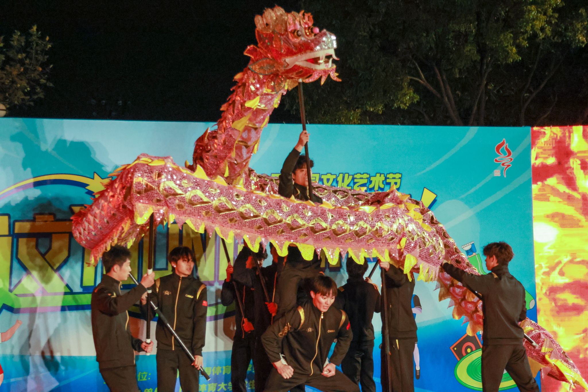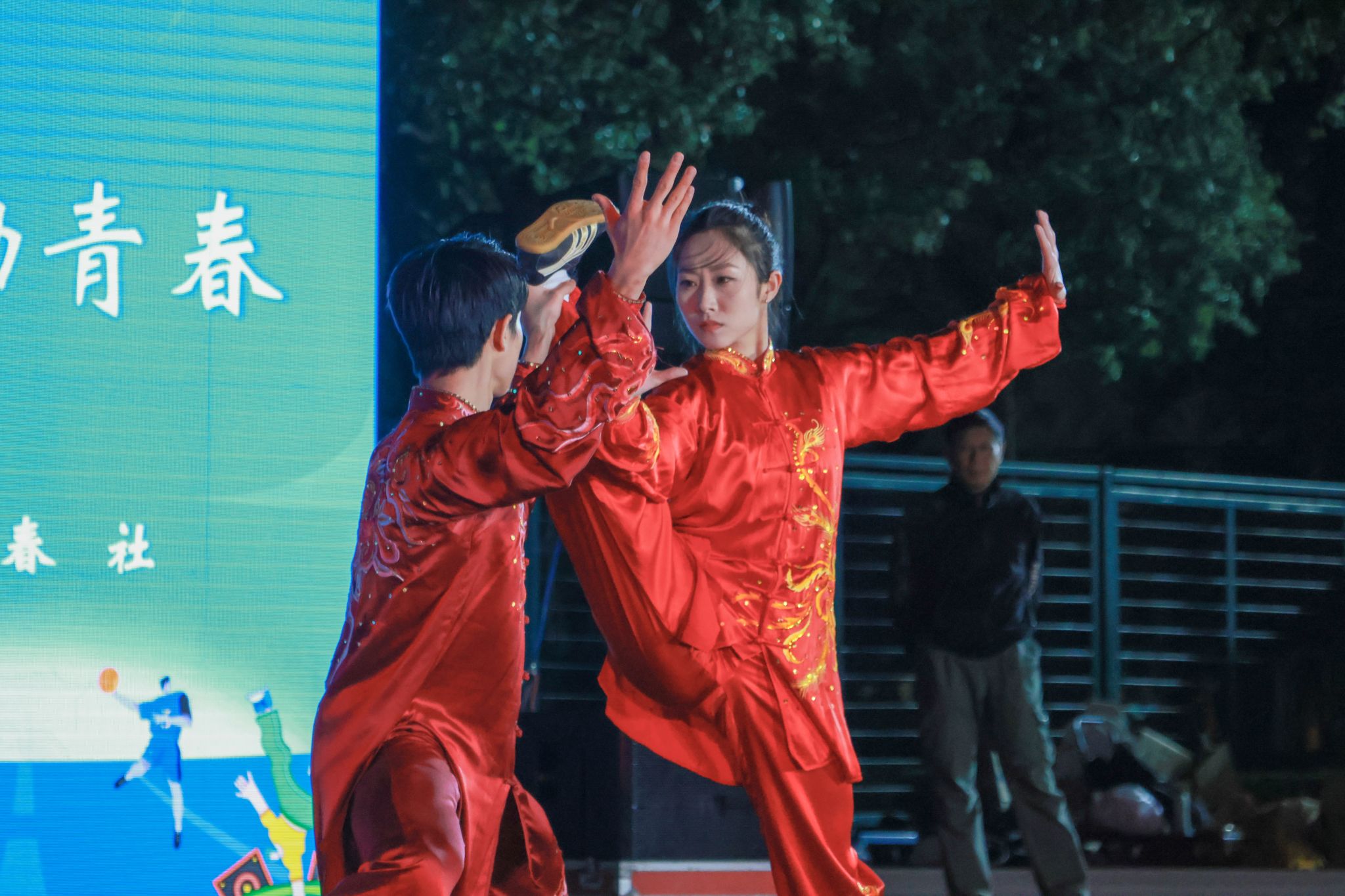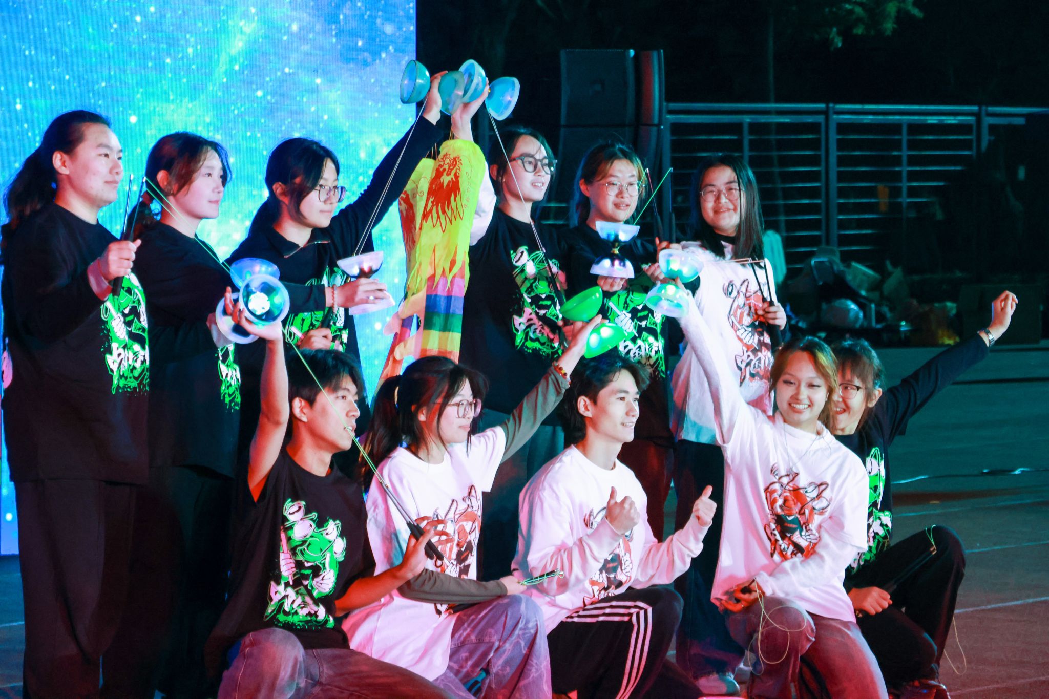 开场的龙狮社《龙腾九州》,舞龙表演气势恢宏,尽显团结与力量之美,瞬间点燃全场热情。其他社团同样表现出色,咏春社、动漫社的创意表演令人眼前一亮,音协《whats up》和星璨歌手协会《我的未来式》唱响积极的生活态度,将体育、艺术与校园文化深度融合。