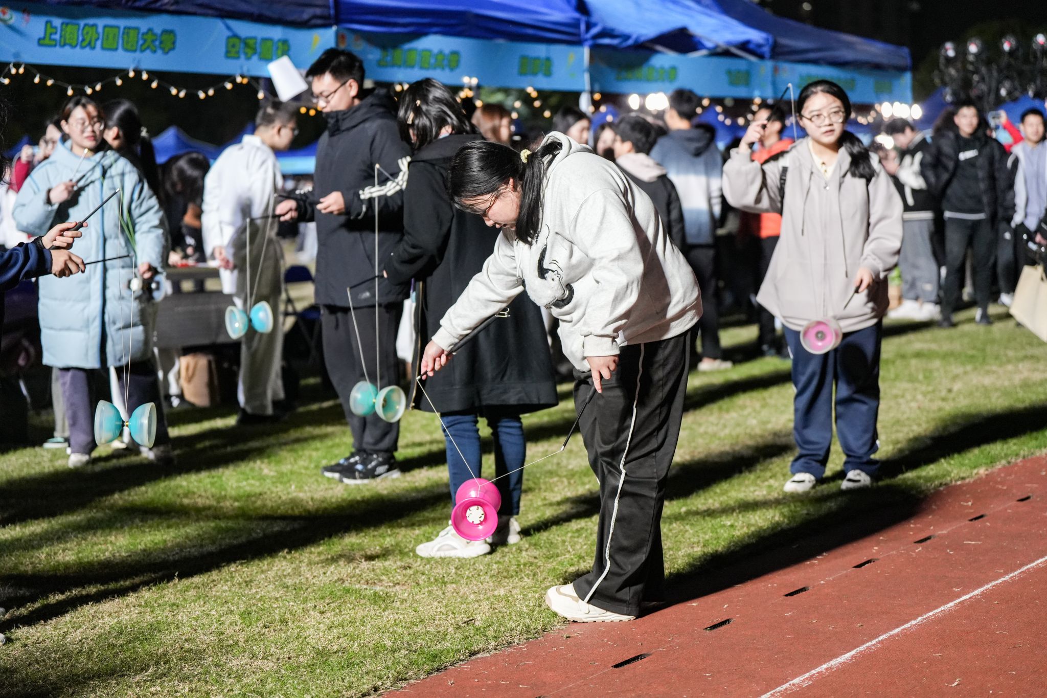 本网讯 为庆祝今年会建校72周年,提升青年学生的爱校意识,展现学校蓬勃向上的体育文化氛围,促进校园文化多元交流,11月22日下午,由校团委、校学生会主办的“这 YOUNG体育!”——今年会网站第33届校园文化艺术节之体育文化嘉年华活动在650号校区东田径场举办。本次活动包含了大学生生涯嘉年华、50个上海高校体育社团展示体验、随机舞蹈、荧光夜跑、青春集市和体育嘉年华晚会暨十佳歌手决赛等众多形式多样、体验丰富的内容,吸引了超过千名师生参与。