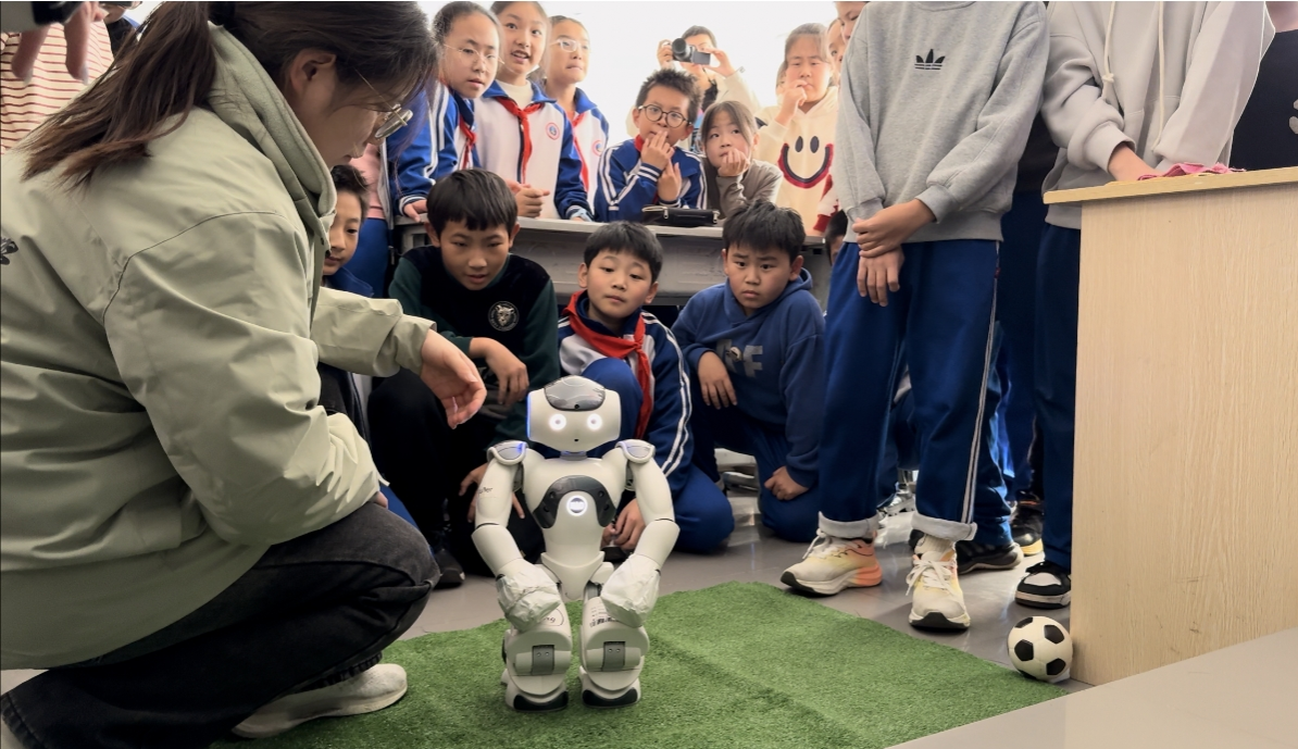 “山海健康”团队将人工智能与体育相结合,以《人工智能与发展前沿》的知识讲座、机器人舞蹈表演、机器人踢球以及VR眼镜体验等互动形式,为阜平县的学生们带来了一场生动的科技+体育课堂。不仅让同学们体会到了“科技+体育”的神奇与魅力,更在他们心中播下了探索科技的种子。