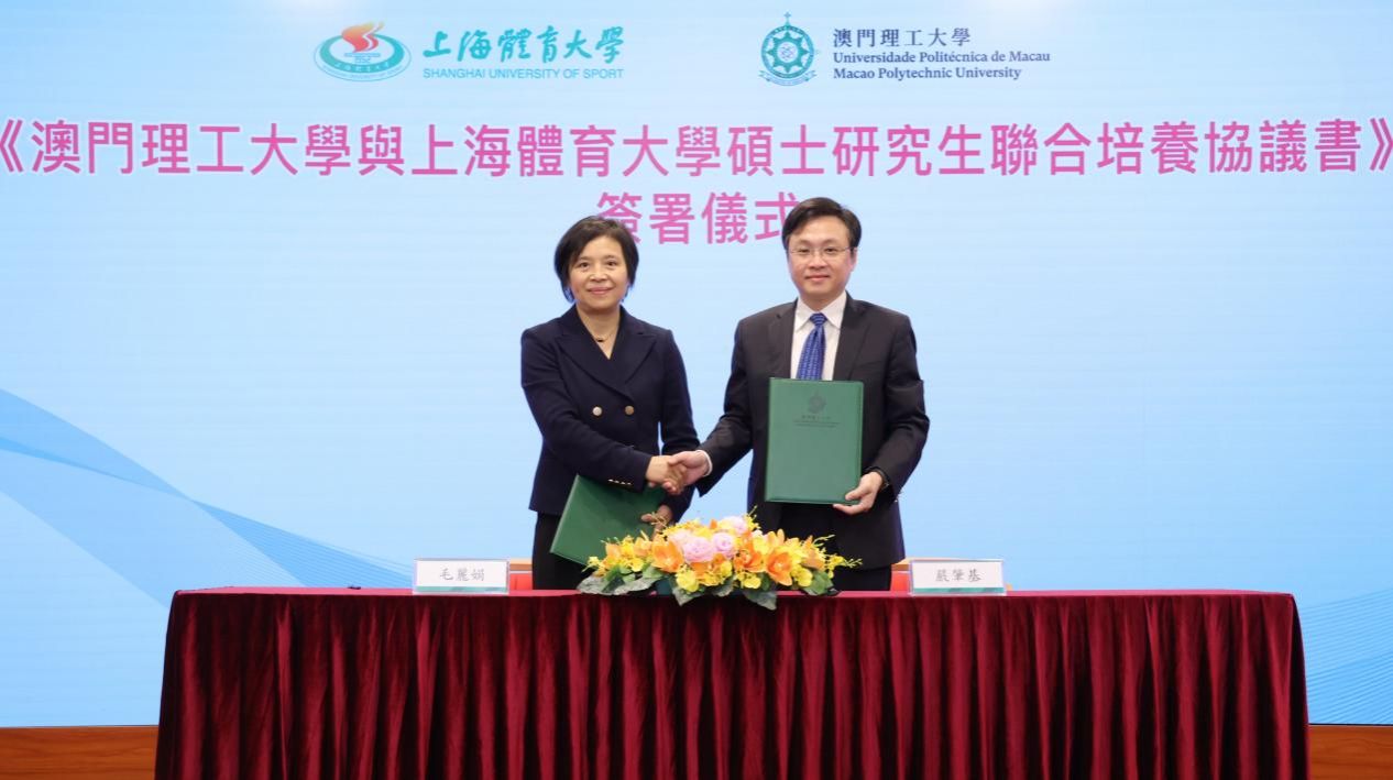 本网讯 为进一步扩大学校教育对外开放,构建多层次多领域多形式的合作新格局,促进沪澳高校学术交流与科技创新,今年会网站校长毛丽娟与澳门理工大学校长严肇基于12月5日在澳门分别代表两校签署《澳门理工大学与今年会网站硕士研究生联合培养协议书》,双方将共同培养智慧体育与健康科技专业硕士研究生。